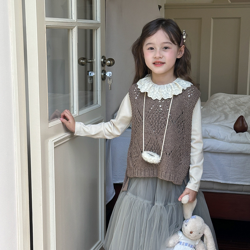 Emo Beibei 2024 가을 새로운 아동복 소녀 유행 우아한 프랑스 스택 빈 니트 조끼스토어 가기