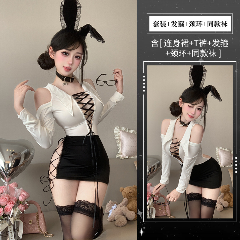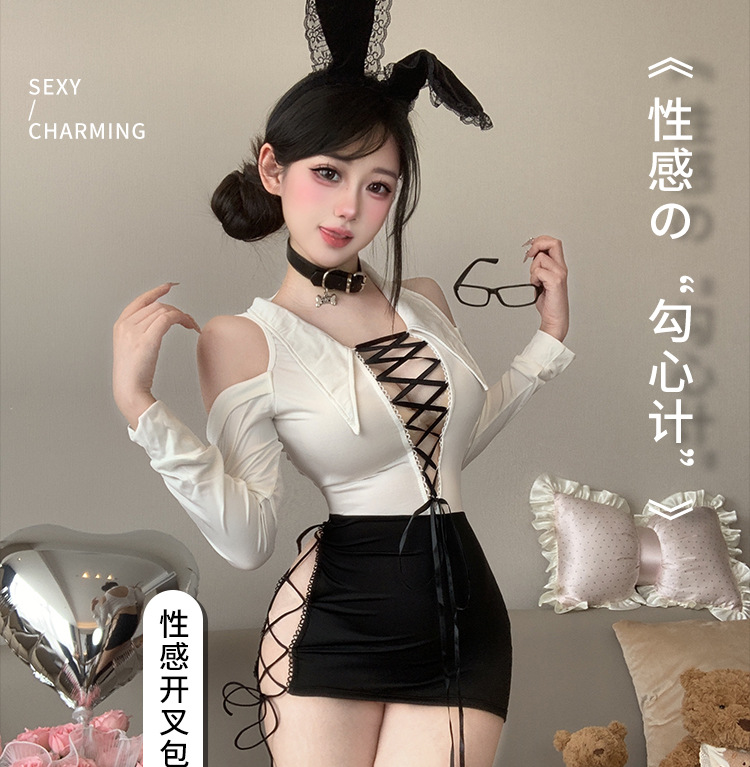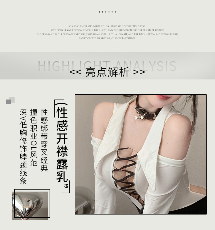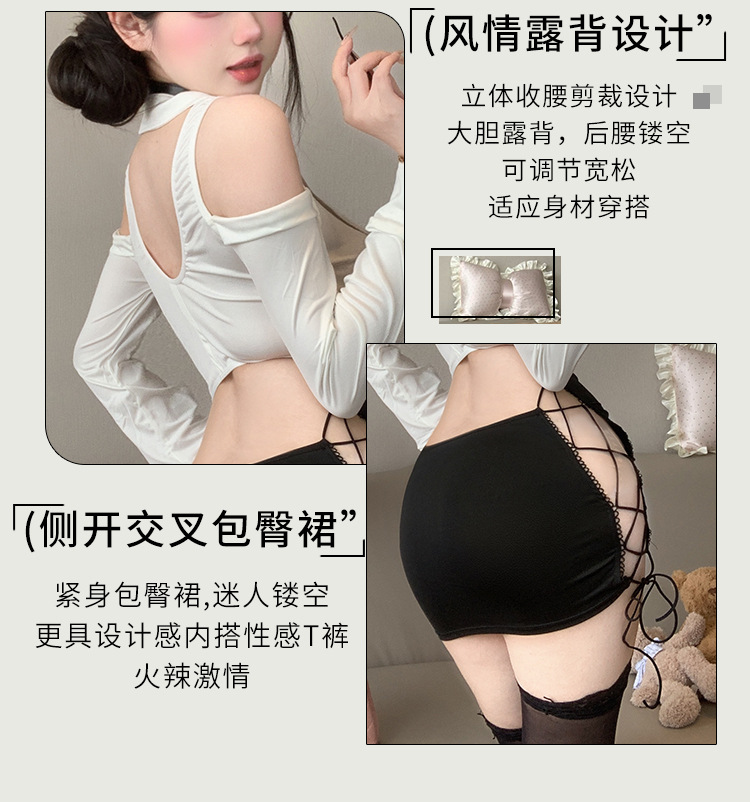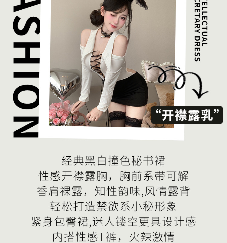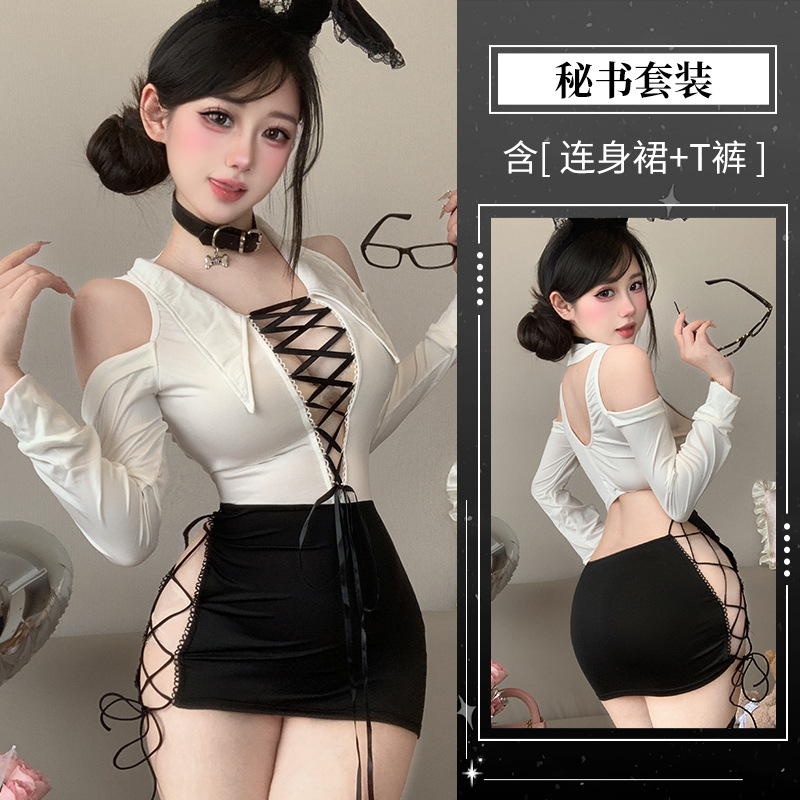 섹시한 속옷, 순수한 욕망, 엉덩이를 감싸는 치마, 핫한 비서, 탈착 불가 유니폼, 유혹적인 잠옷 세트 2839