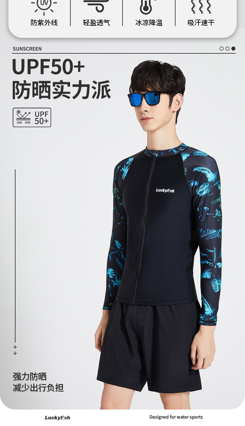 2024 새로운 도착 다이빙 세트 남자 스플릿 긴팔 선 스크린 수영복 퀵 드라이 래프팅 세트 서퍼 탑스토어 가기