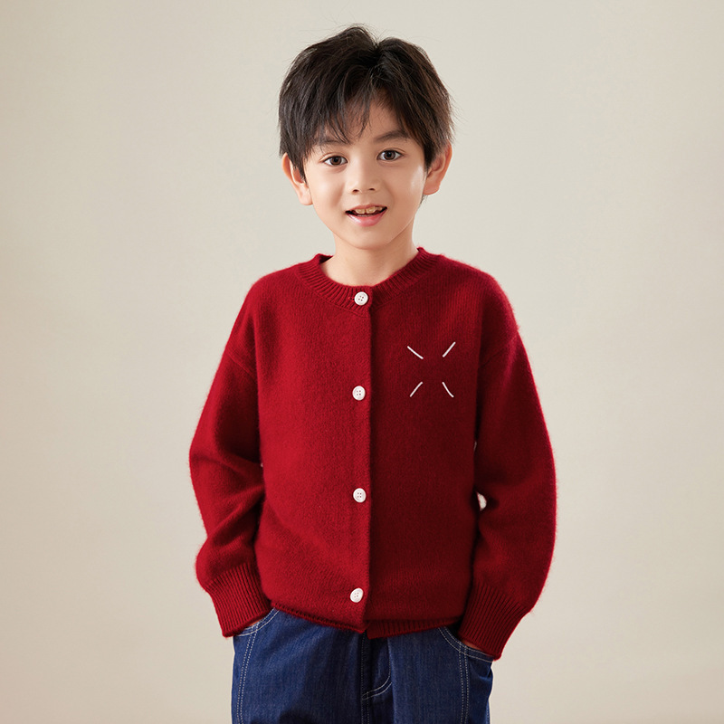 24 가을과 겨울 어린이 100 모직 스웨터 크루 넥 카디건 스웨터 어린이 코트 중간 및 큰 어린이 모직 스웨터 니트 아우터스토어 가기