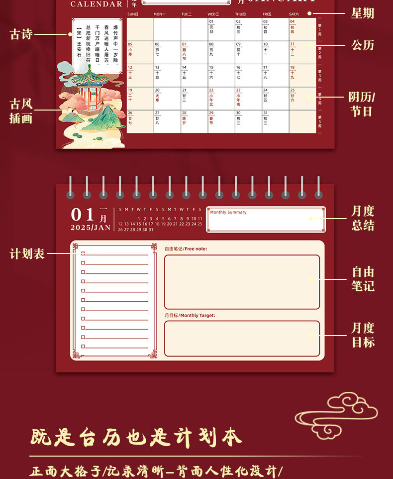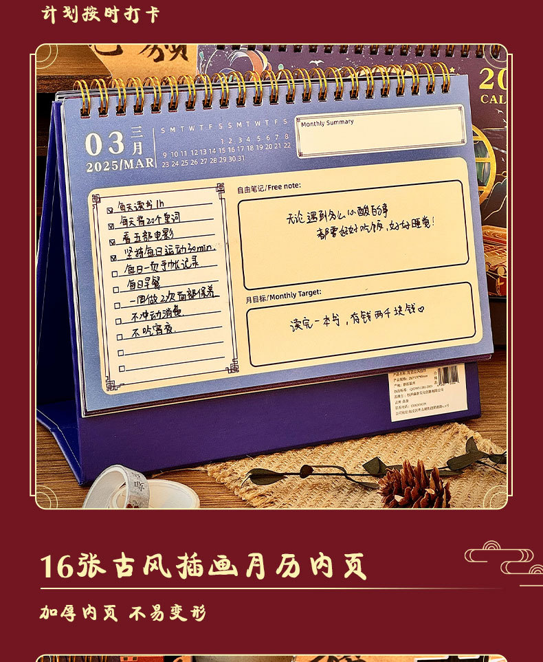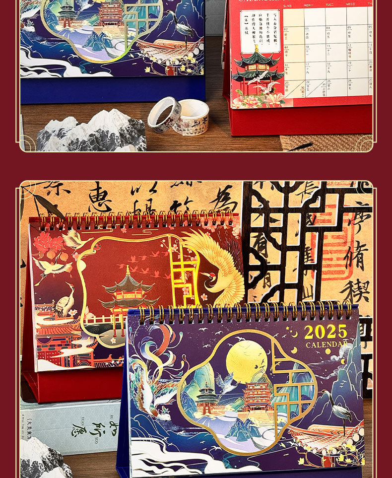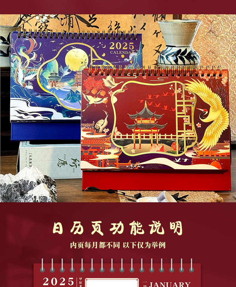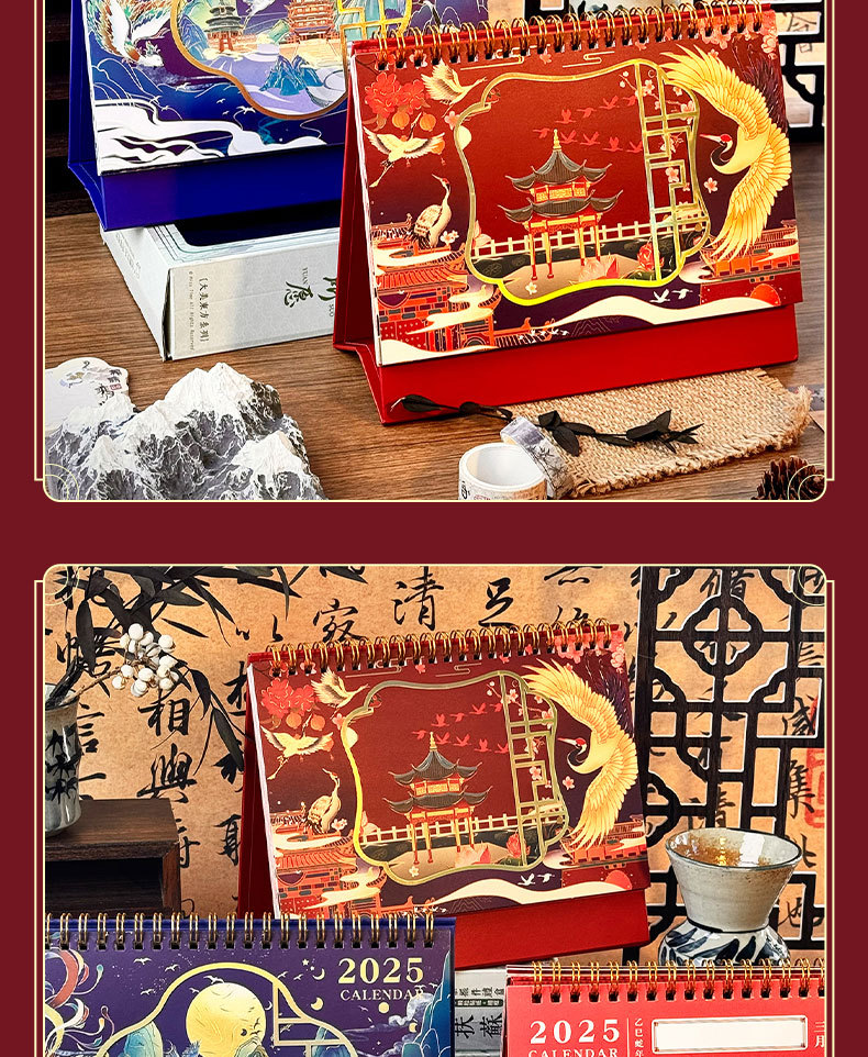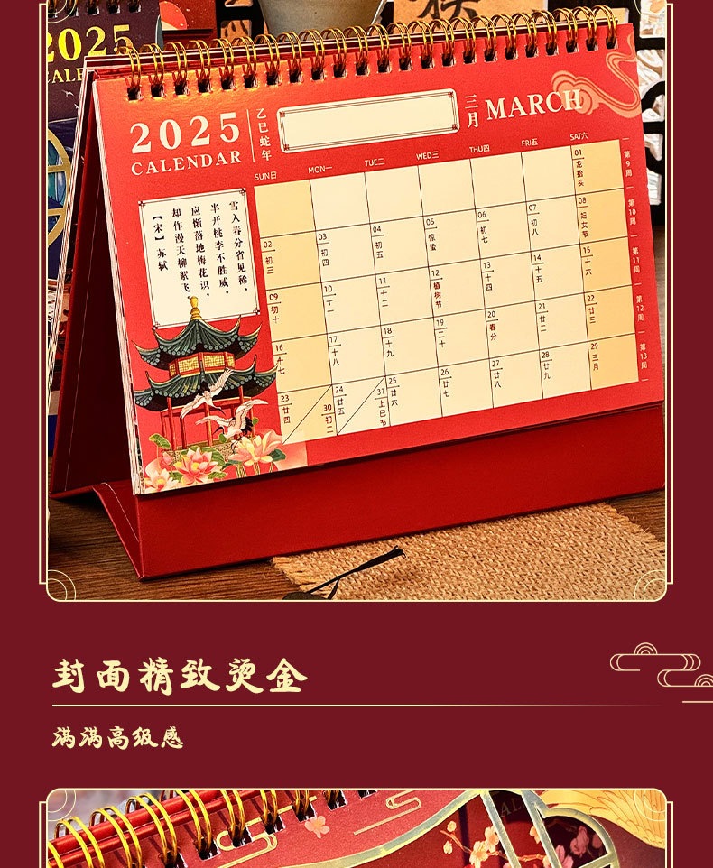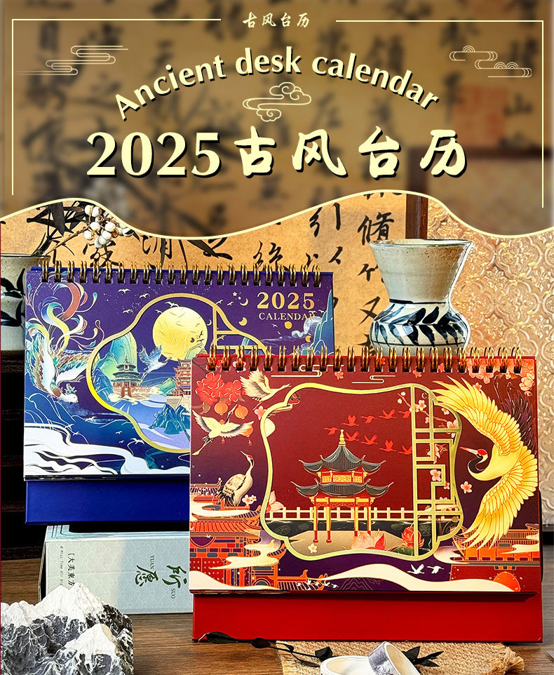 2025 년 뱀 골동품 새 책상 달력 창조적 인 달력 링 사무실 데스크탑 메모장 장식품 도매