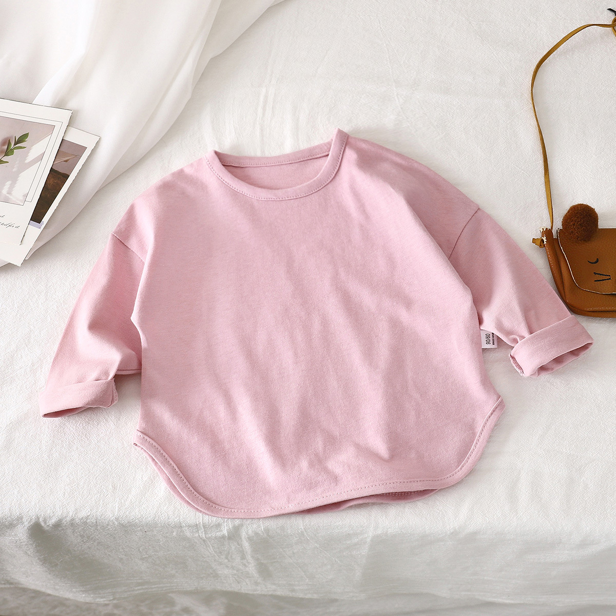 아동용 긴팔 티셔츠 가을 순면 남아 한국 스타일 여아 상의 유아용 이너웨어 아동복 도매 중소 아동용