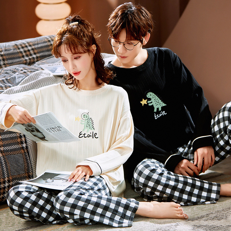 가을과 겨울 커플 잠옷 만화 귀여운 긴 소매 바지 캐주얼 풀오버 캐주얼 의류 남성 학생 홈 의류스토어 가기