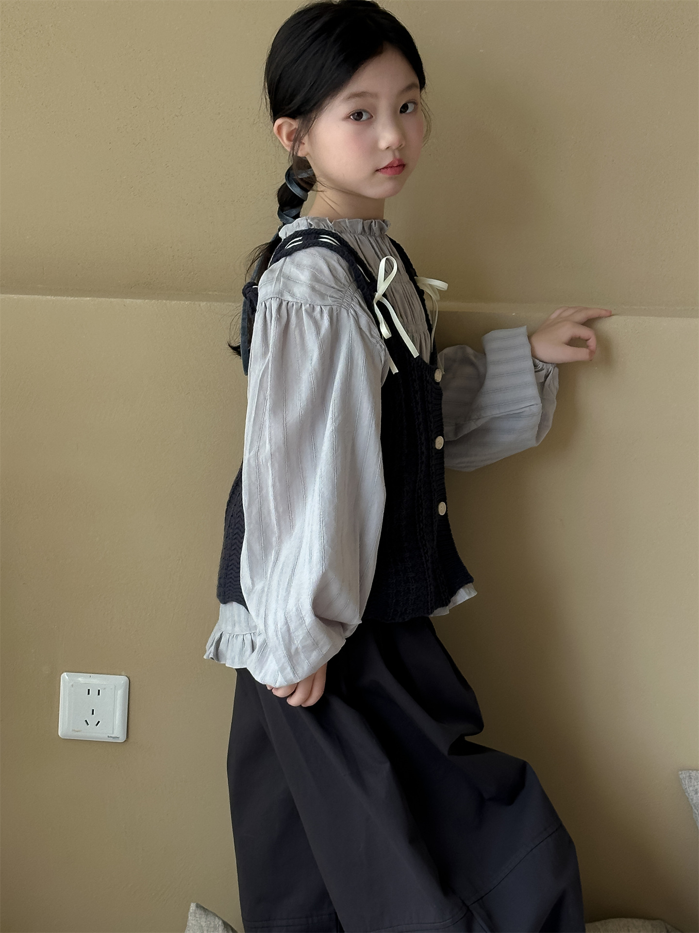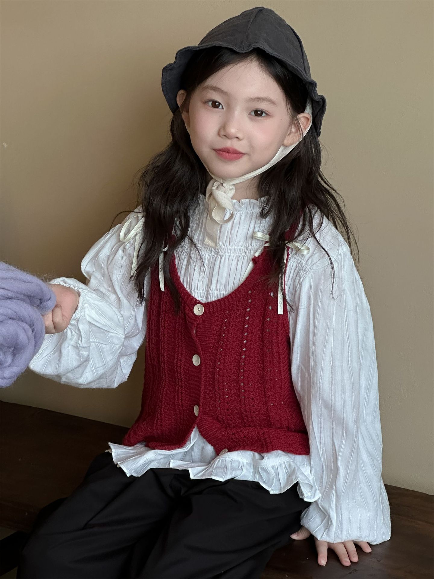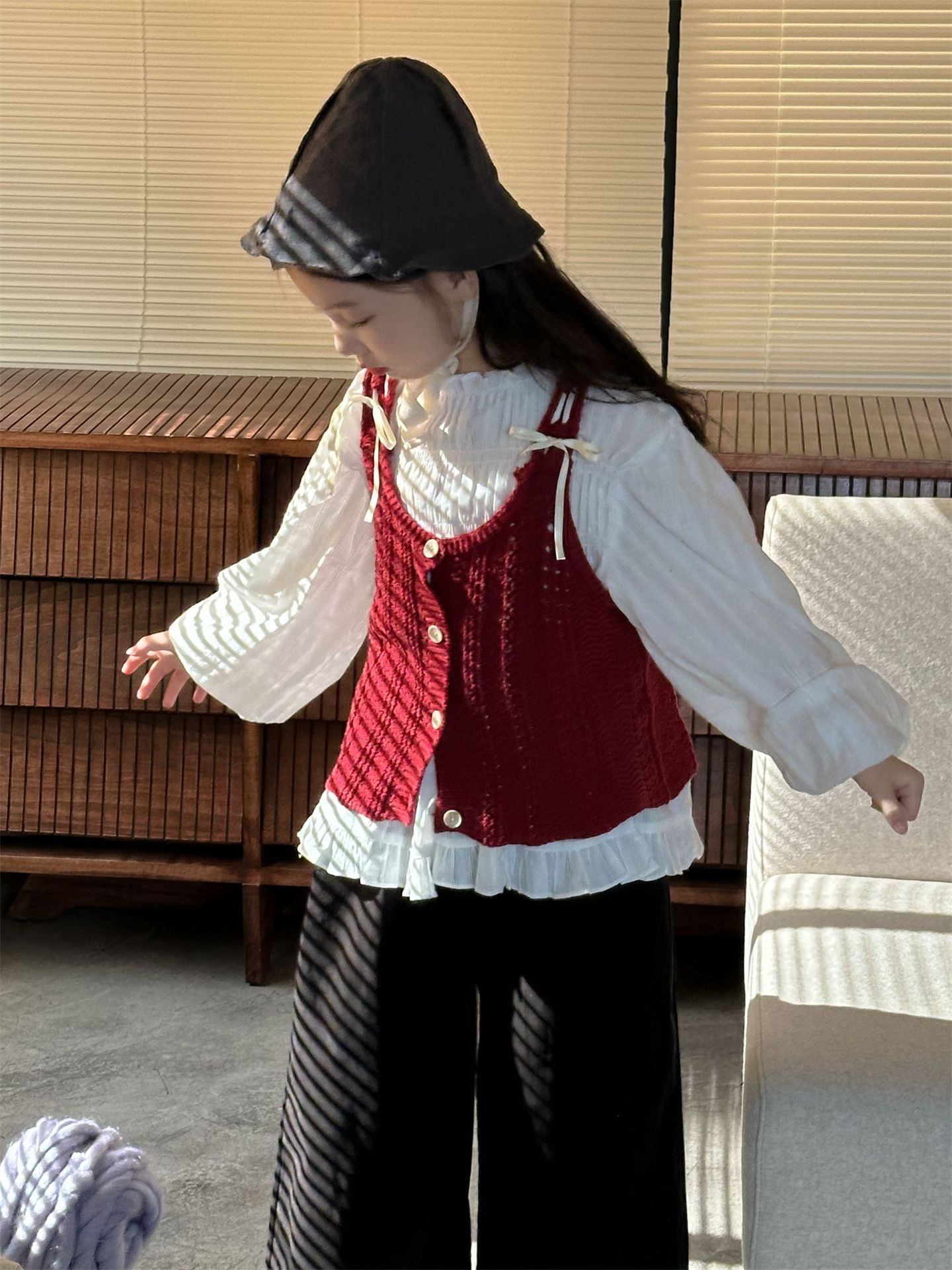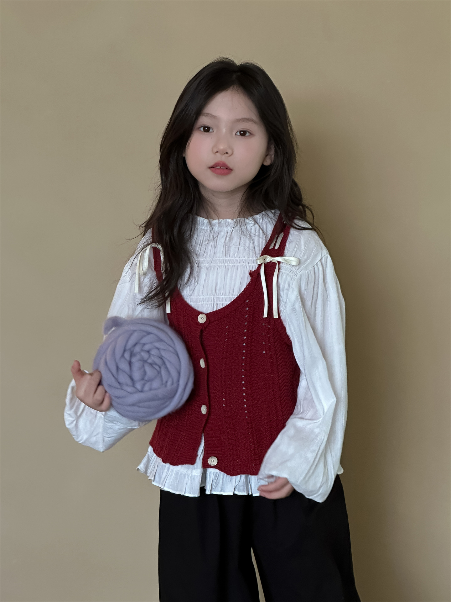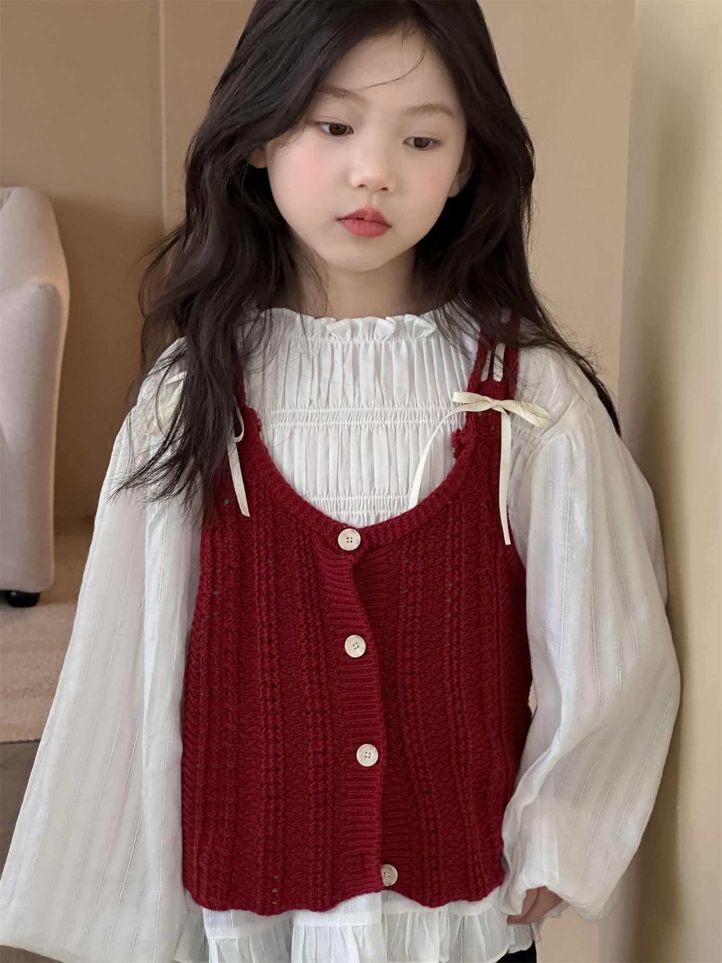꽃과 찾는 한국 아동복 소녀 슬링 스웨터 2024 가을 새 올매치 니트 보우 조끼 탑