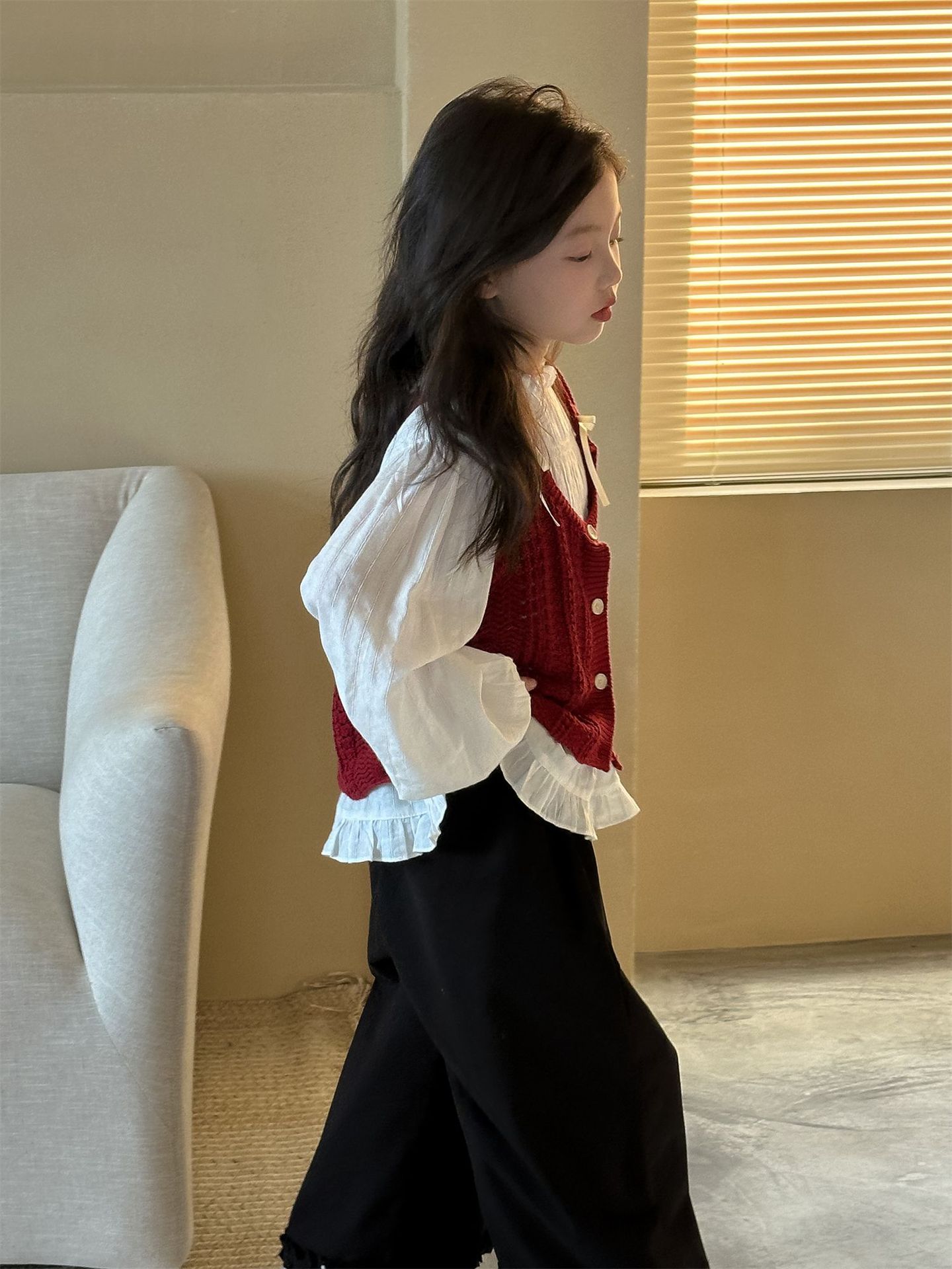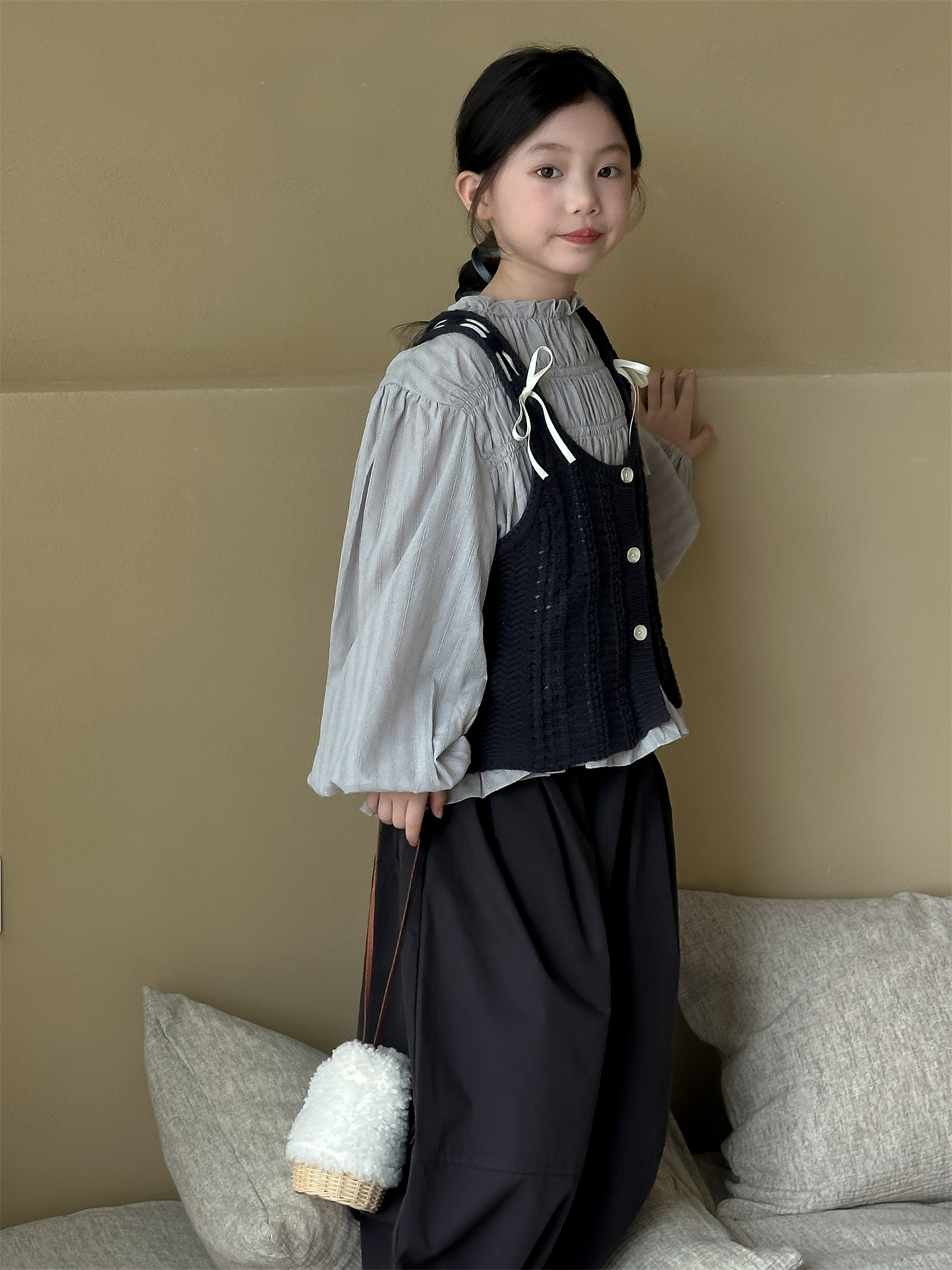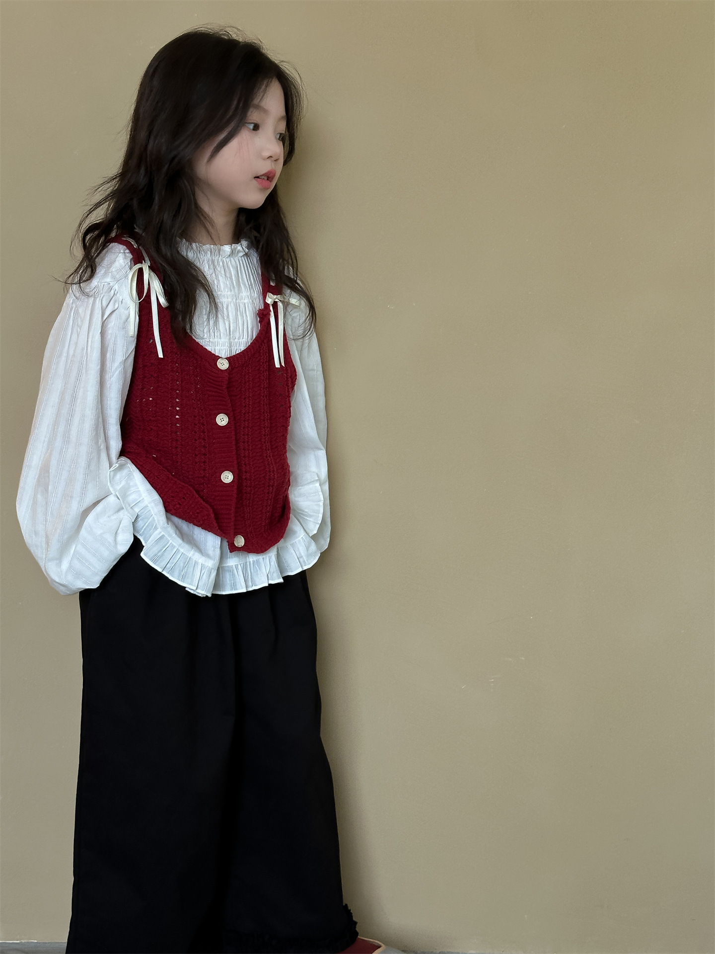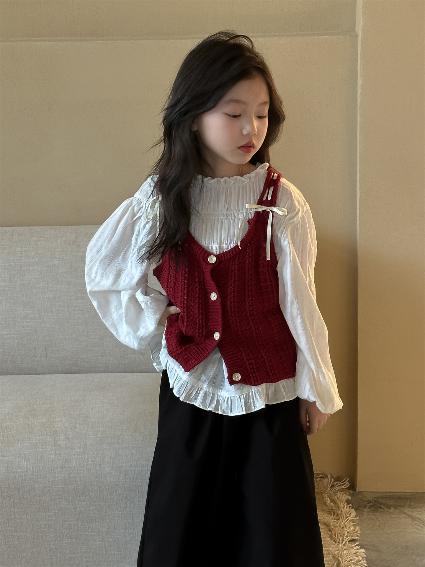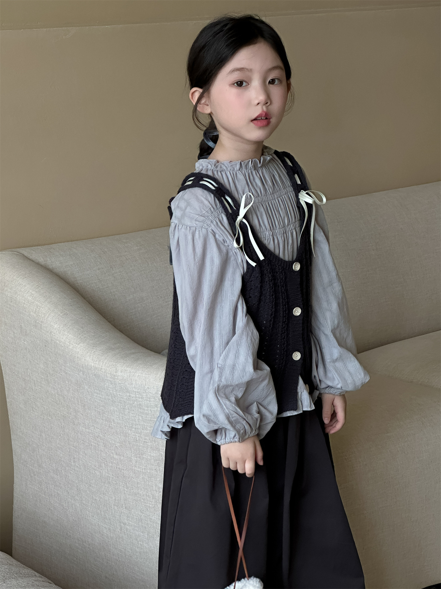 꽃과 찾는 한국 아동복 소녀 슬링 스웨터 2024 가을 새 올매치 니트 보우 조끼 탑