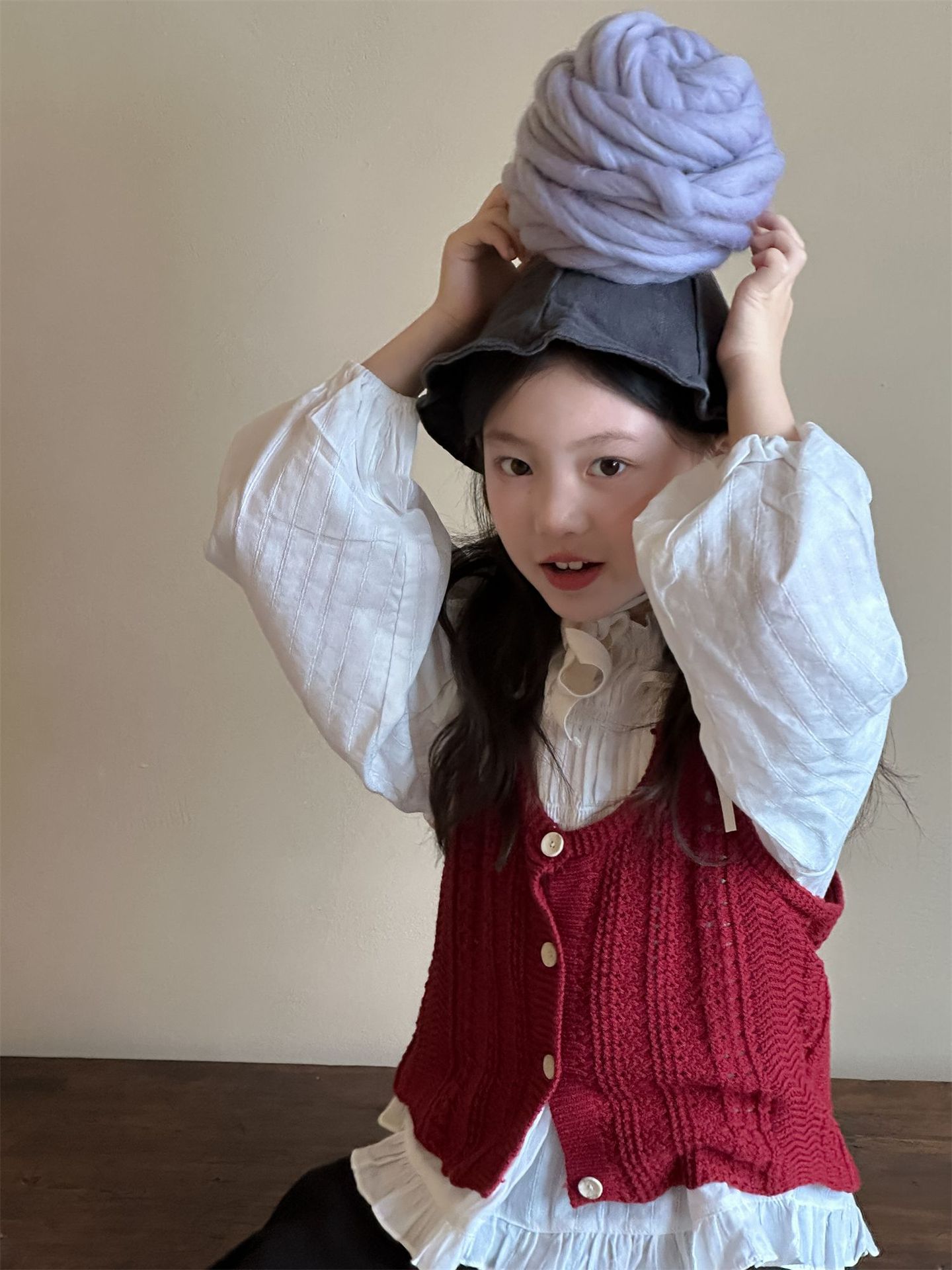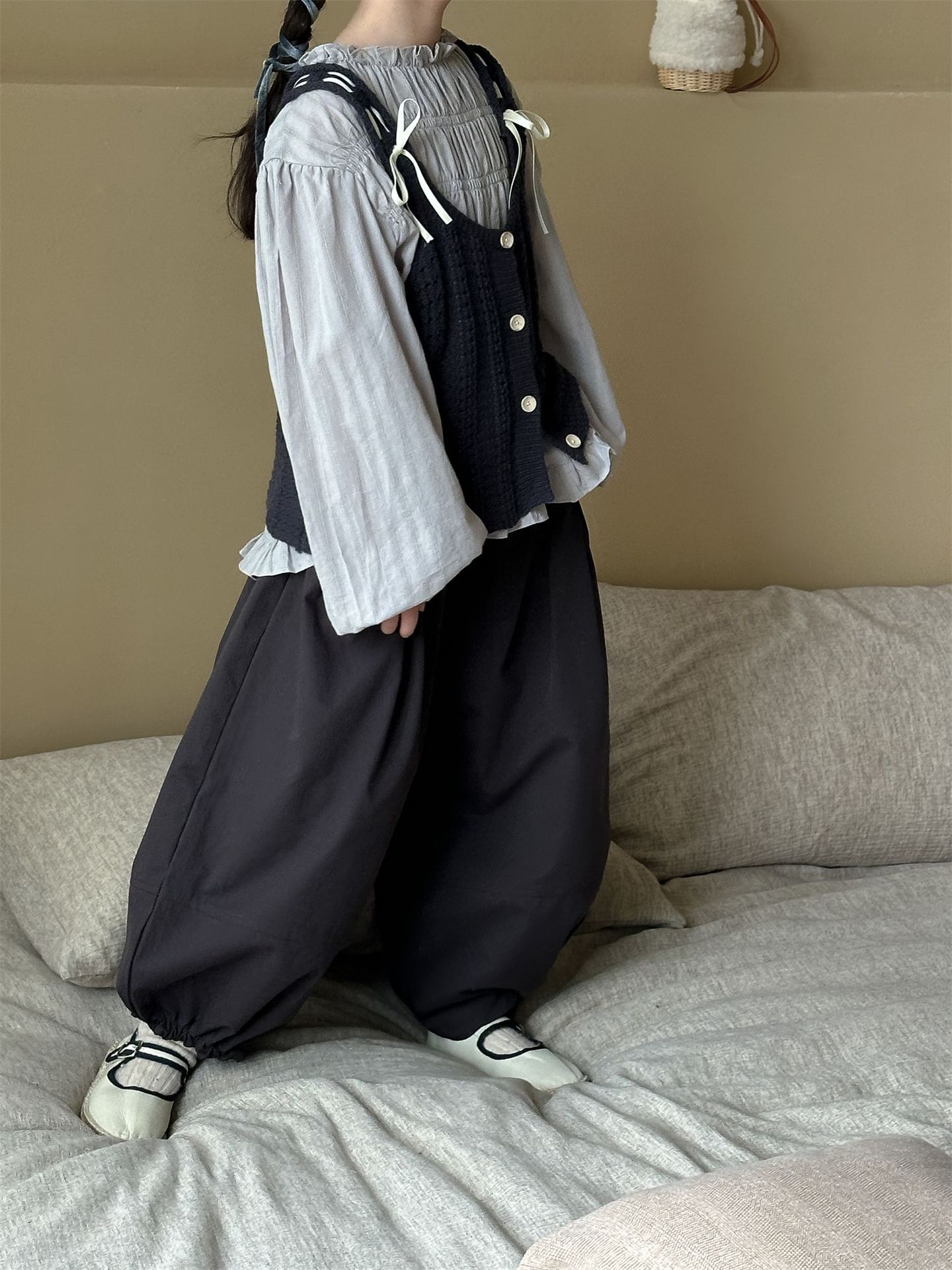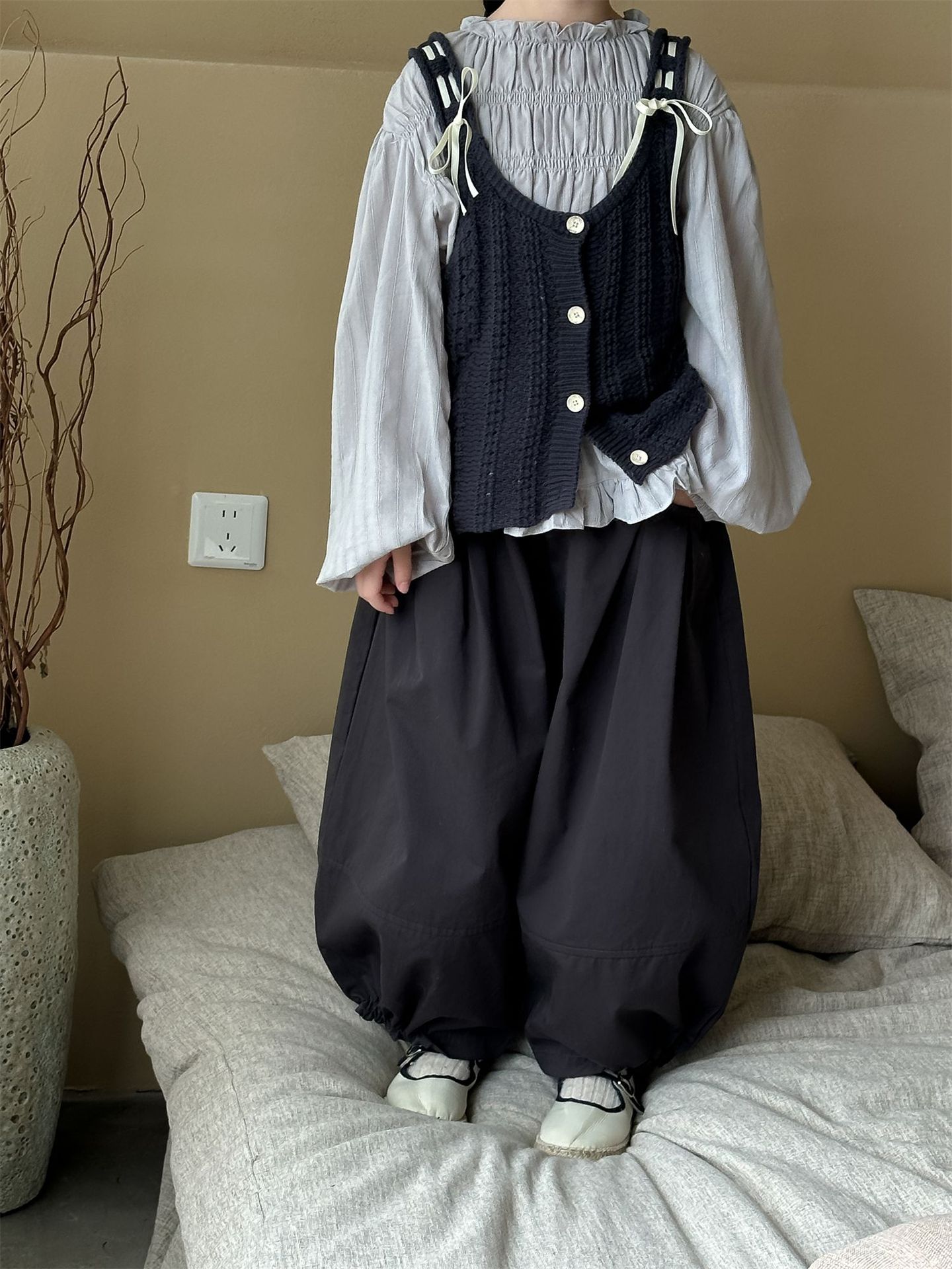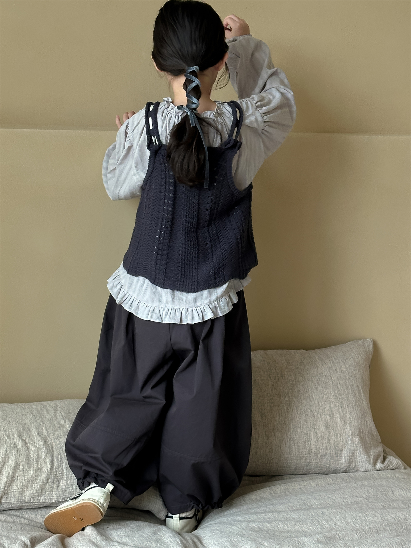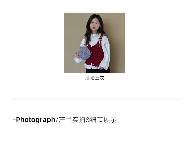 꽃과 찾는 한국 아동복 소녀 슬링 스웨터 2024 가을 새 올매치 니트 보우 조끼 탑