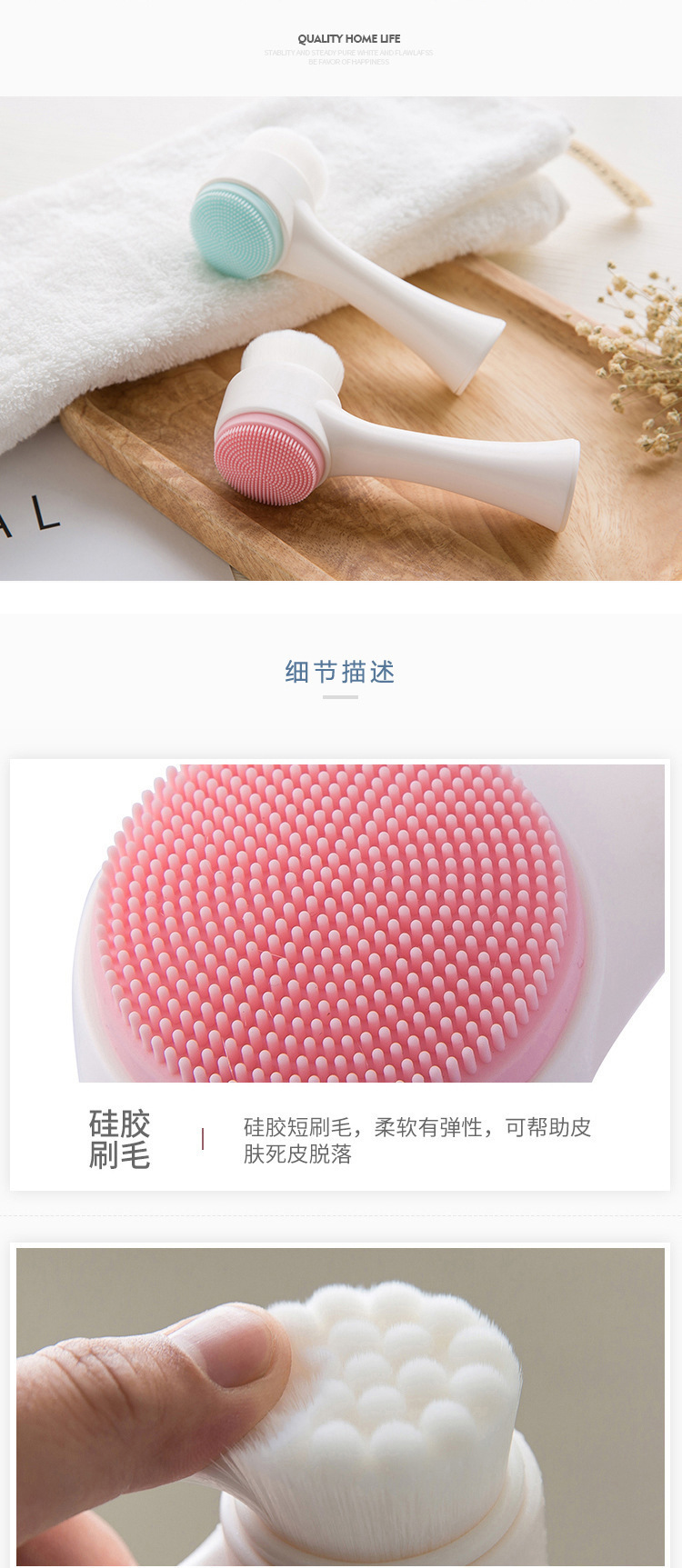 T 도매 실리콘 가정용 3D 양면 얼굴 브러시 부드러운 머리 소녀 수동 깊은 청소 오염 제거 모공 클렌징 브러시