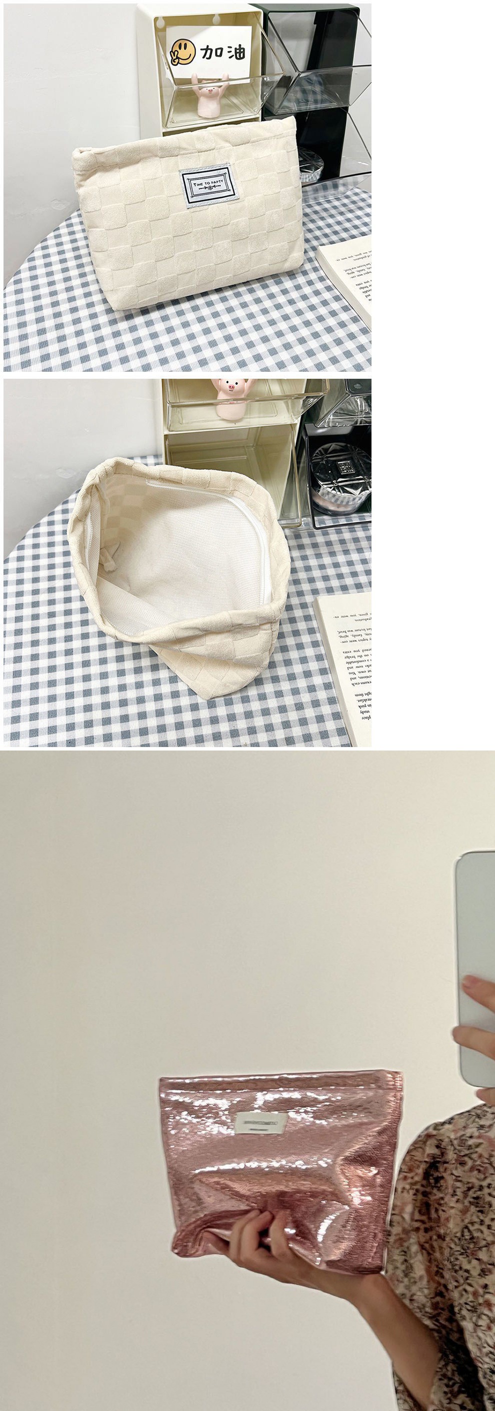 휴대용 화장품 가방 와플 컬러 보관 가방 기질 클러치 백 학생 연필 케이스 대용량 편리한 보관 가방