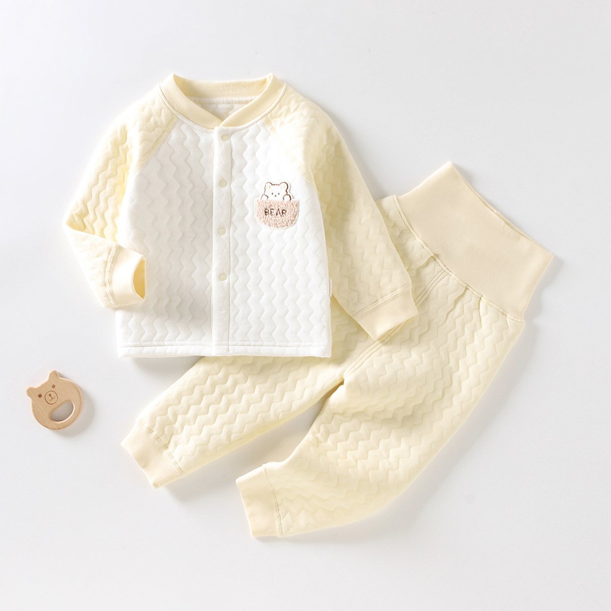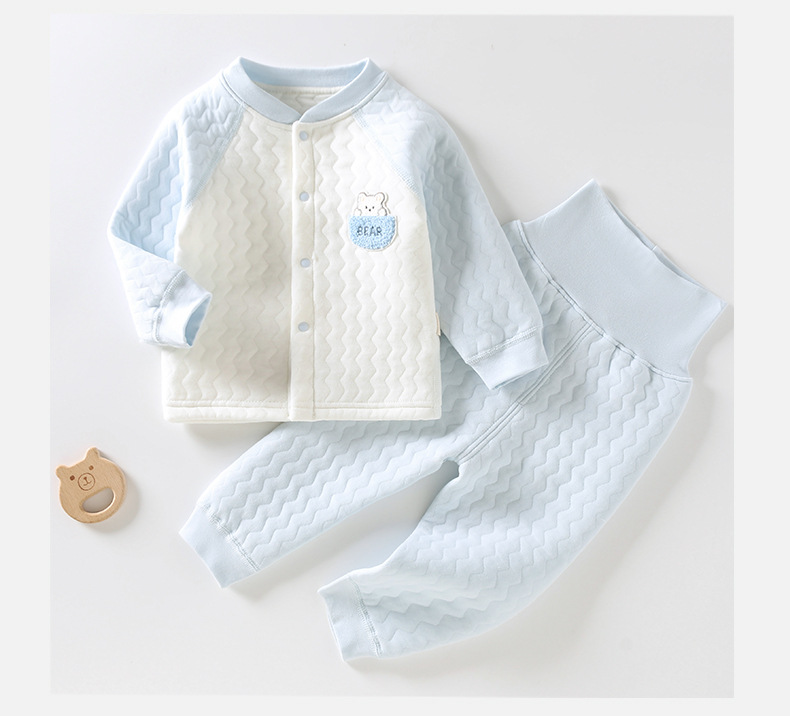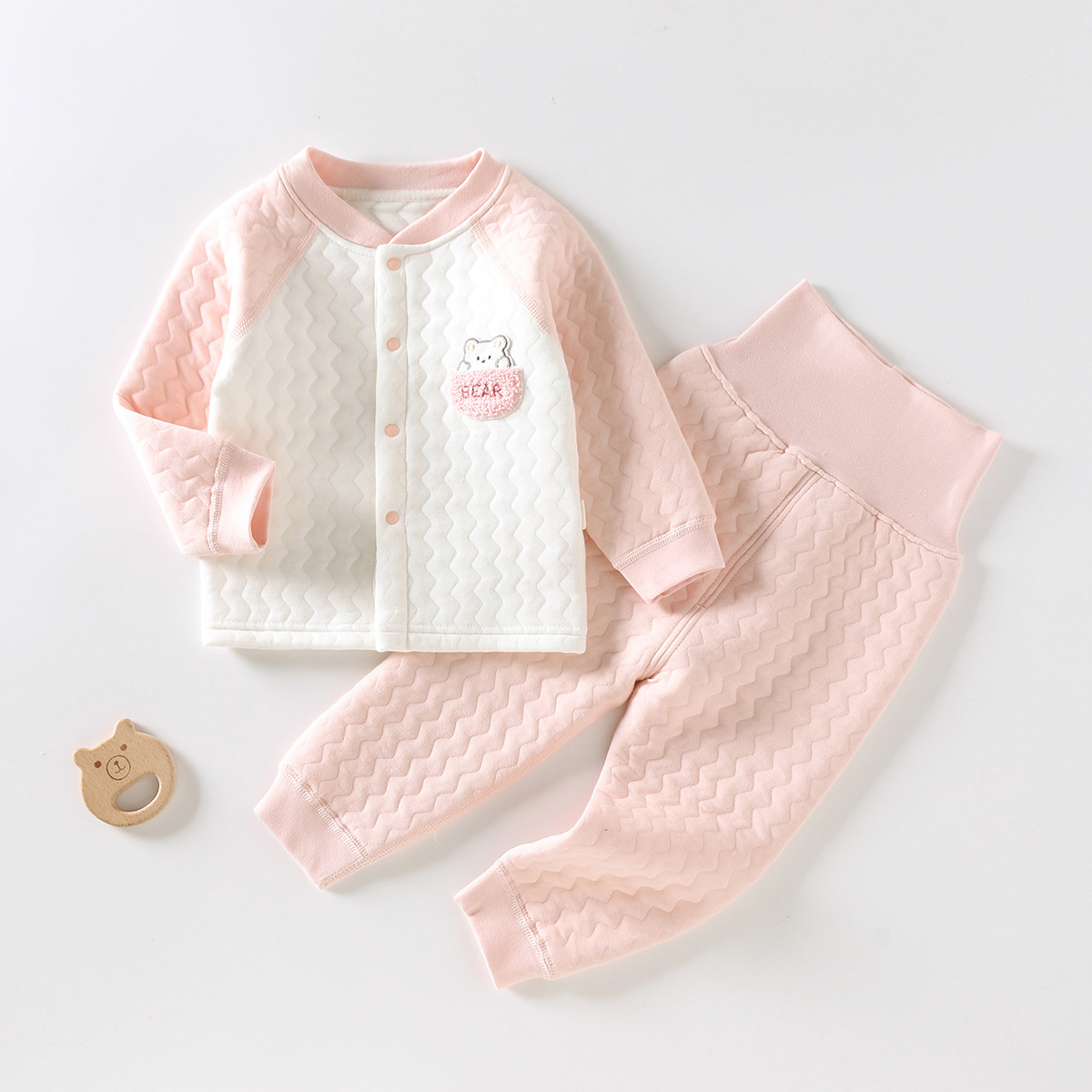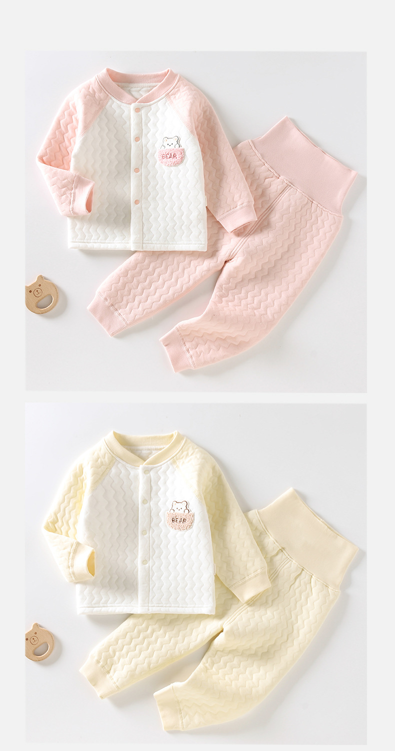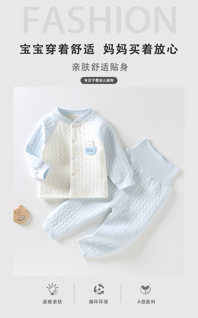 가을과 겨울 새로운 어린이 속옷 세트 신생아 3 층 따뜻한 높은 허리 배 투피스 아기 뼈없는