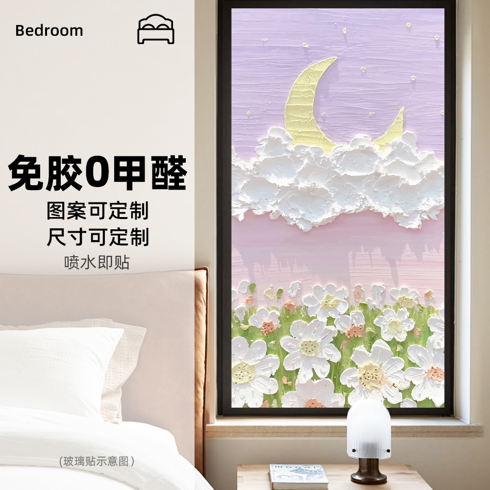 Yiyao BLT5119 만화 유화 스타일 달 꽃 정원 유리 스티커 화장실 욕실 유리 도어 접착제-무료 정전기 스티커스토어 가기