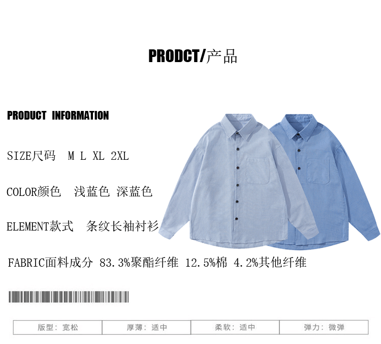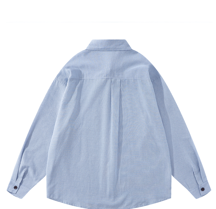 일본식 도시 소년 프로필 대학 스타일 줄무늬 긴 소매 셔츠 남성과 여성의 느슨한 도구 셔츠 캐주얼 코트 트렌디스토어 가기