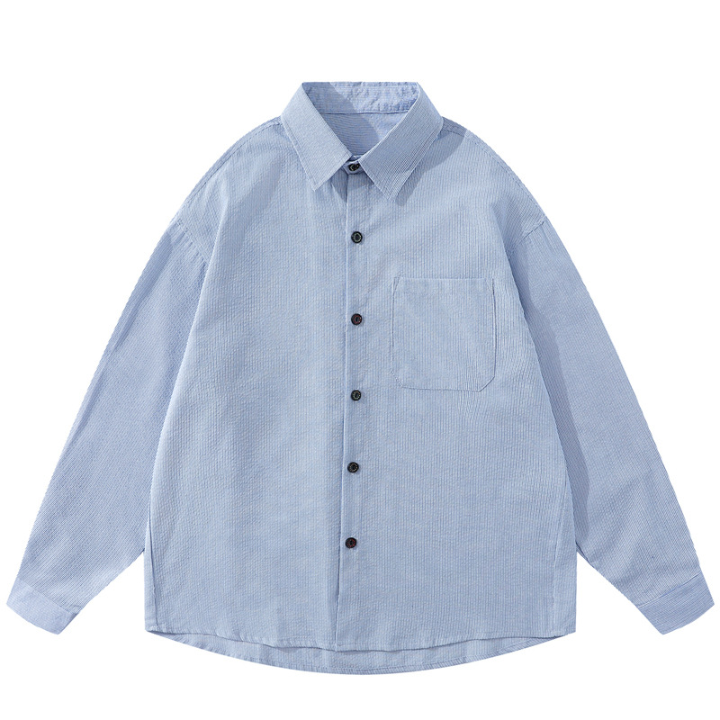 일본식 도시 소년 프로필 대학 스타일 줄무늬 긴 소매 셔츠 남성과 여성의 느슨한 도구 셔츠 캐주얼 코트 트렌디