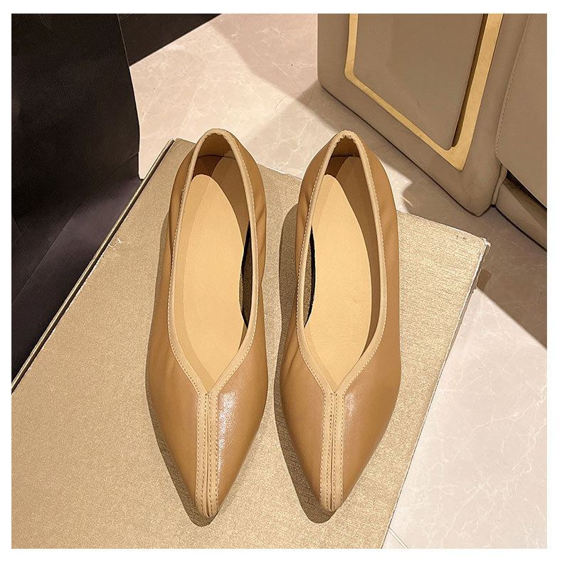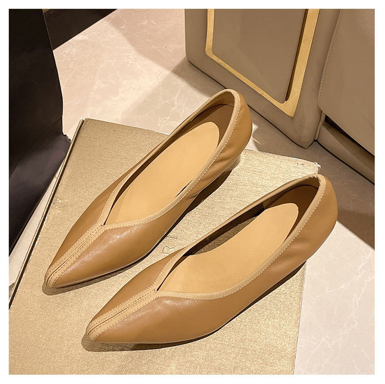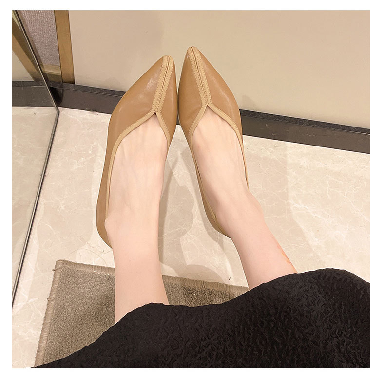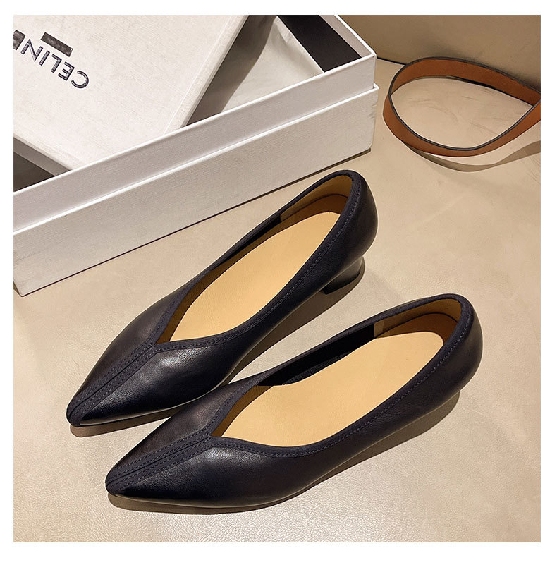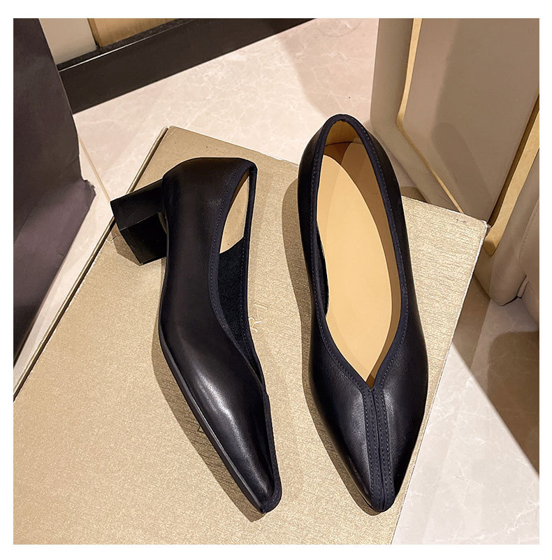 첫 번째 레이어 소 가죽 얕은 입 복고풍 발 뒤꿈치 신발 2025 봄 새로운 정품 가죽 두꺼운 중간 발 뒤꿈치 부드러운 가죽 V 입 지적 발가락 단일 신발 여성을위한