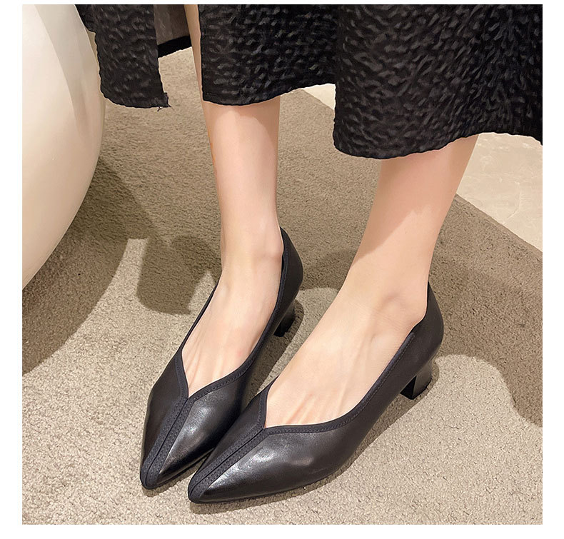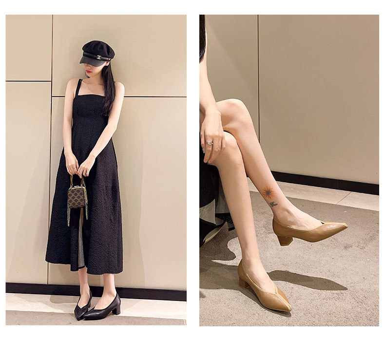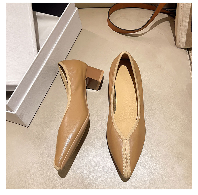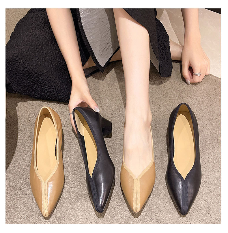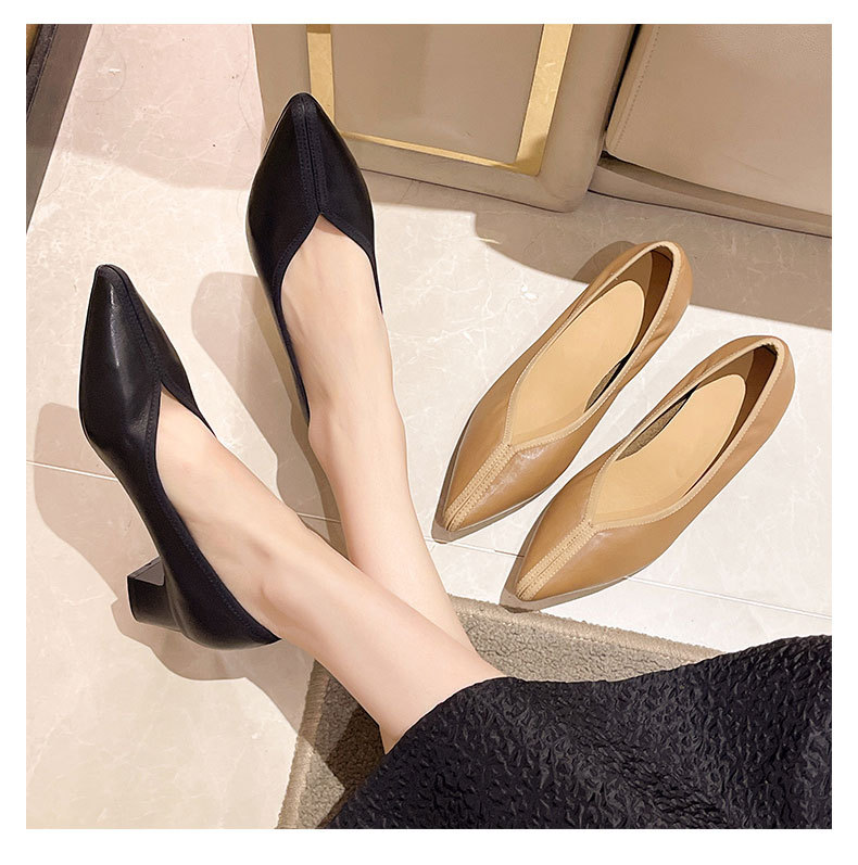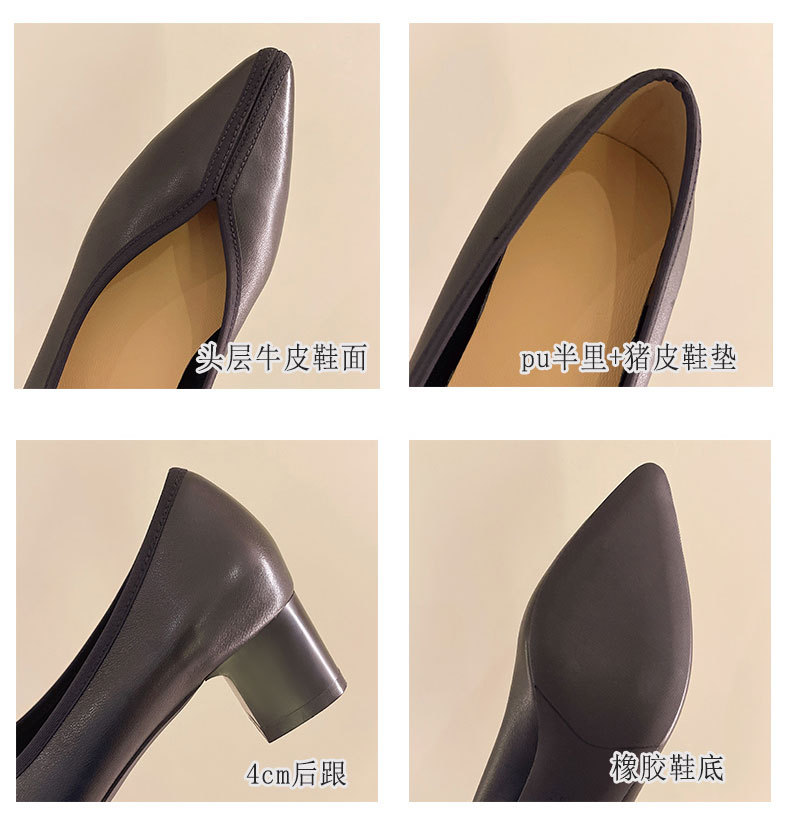 첫 번째 레이어 소 가죽 얕은 입 복고풍 발 뒤꿈치 신발 2025 봄 새로운 정품 가죽 두꺼운 중간 발 뒤꿈치 부드러운 가죽 V 입 지적 발가락 단일 신발 여성을위한스토어 가기