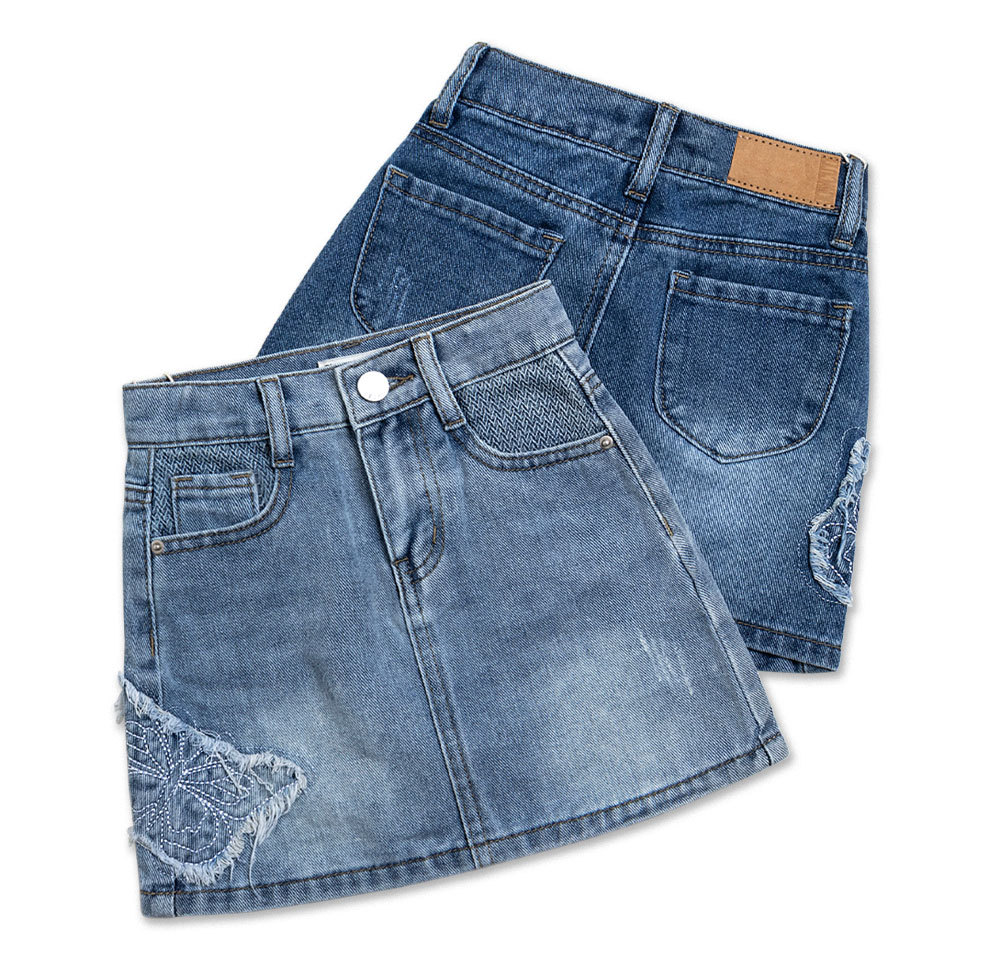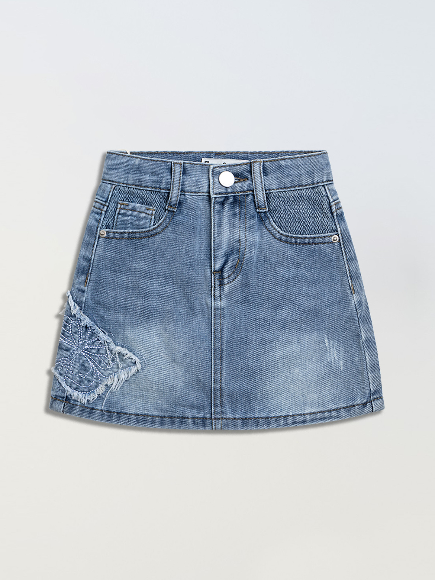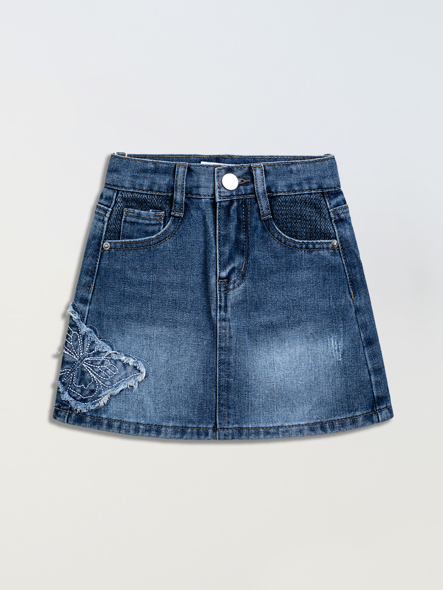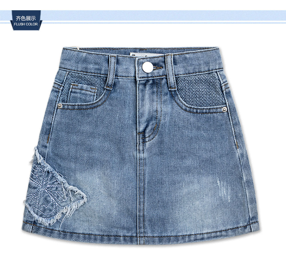 어린이 데님 치마 나비 자수 데님 단어 치마 안티 라이트 소녀 데님 스커트 도매 대외 무역