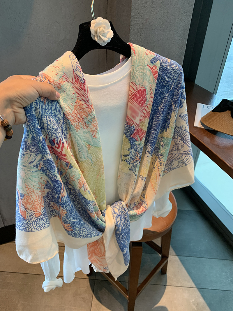 봄과 가을 면화 린넨 손으로 느끼는 큰 광장 스카프 실크 스카프 여성의 여름 태양 보호 여행 사진 격자 무늬 스카프 에어컨 룸 목도리스토어 가기