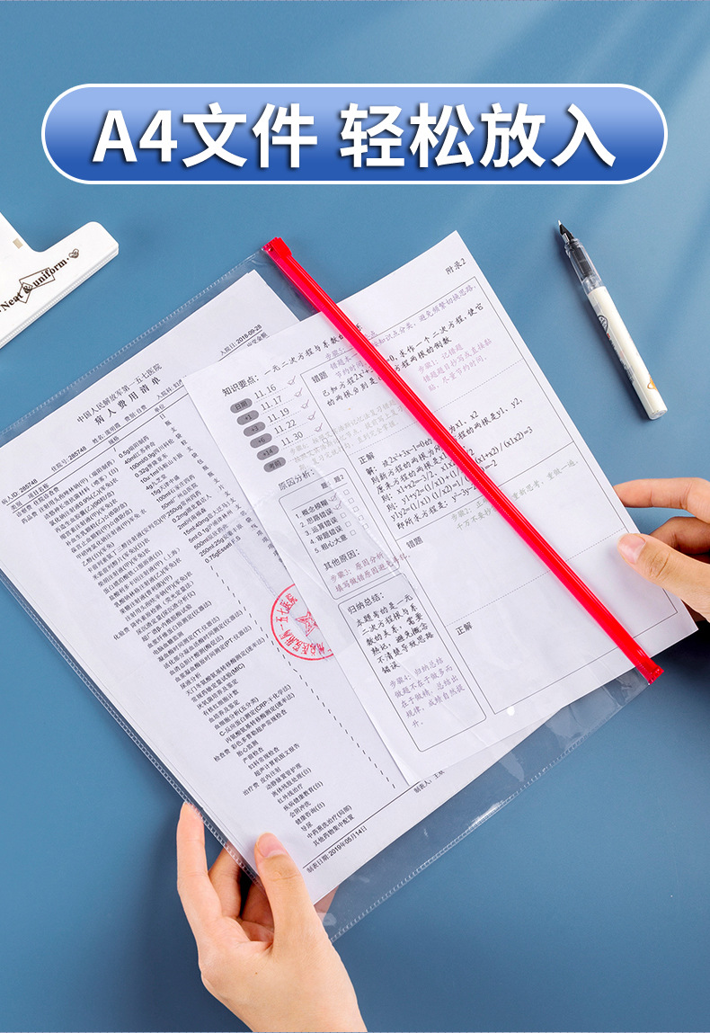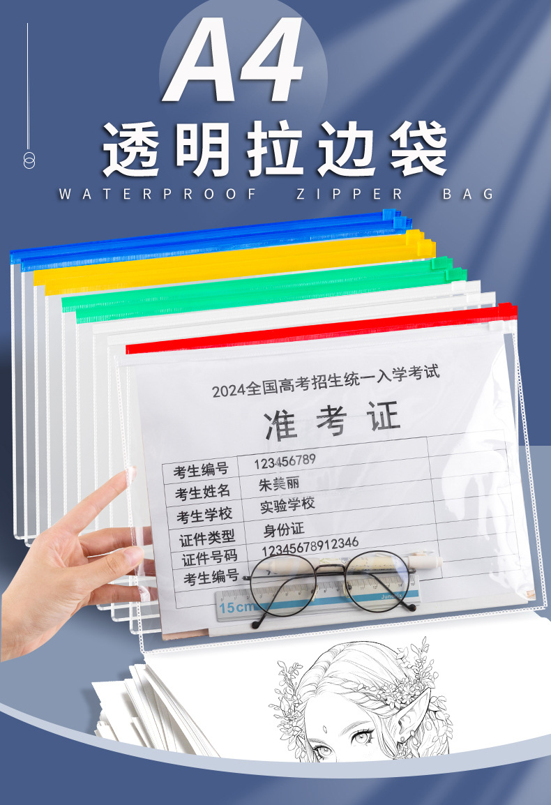 A4 투명 파일 가방 지퍼 투명 지퍼 파일 가방 분류 데이터 저장 가방 가정용 방수 봉인 가방스토어 가기