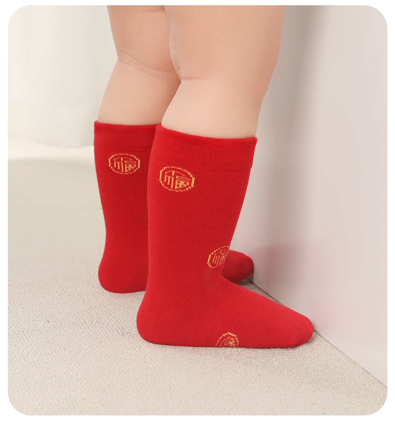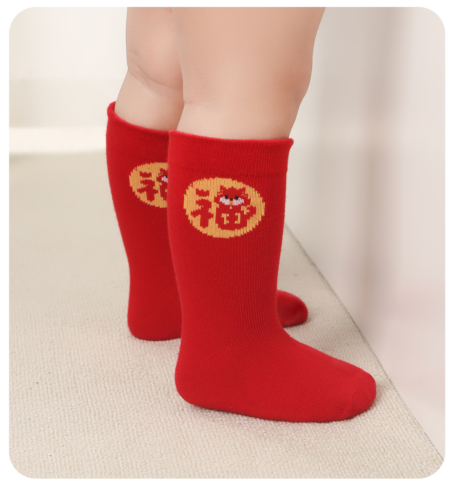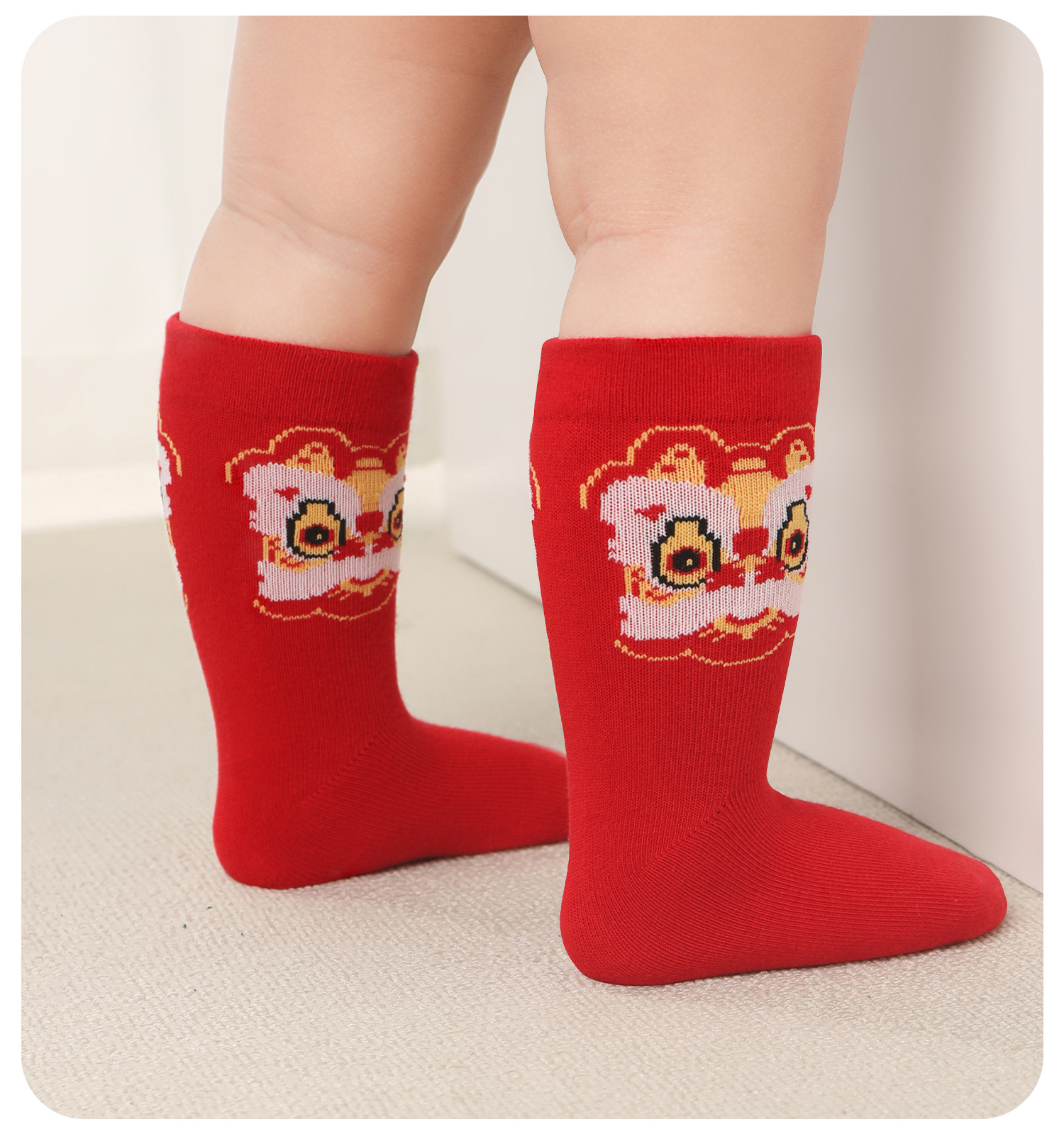아기의 중간 튜브 양말 탄생 올해의 드래곤 레드 양말 새해 양말 신생아 유아 만화 축제