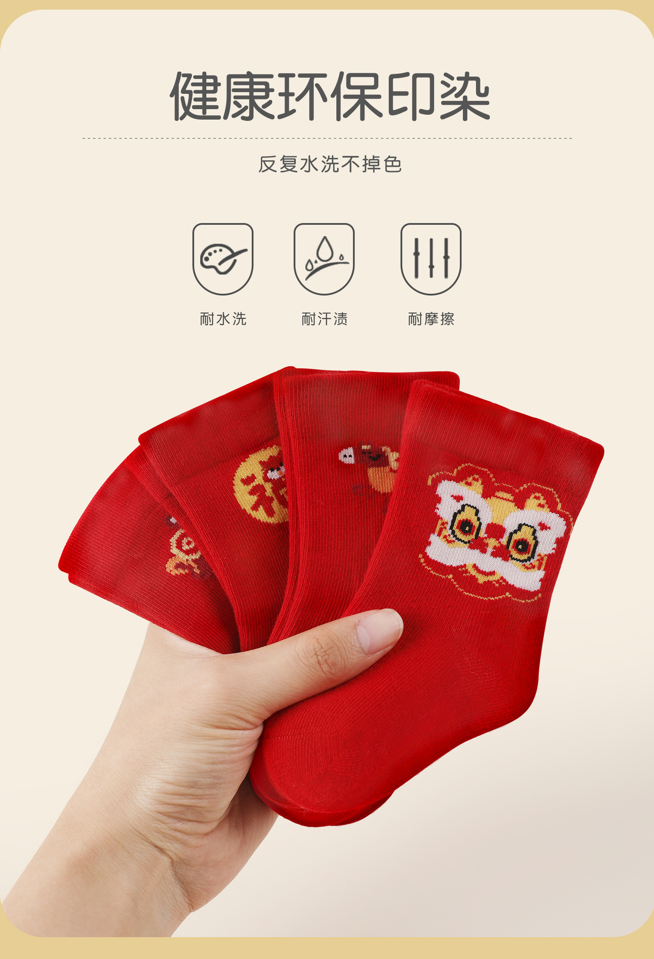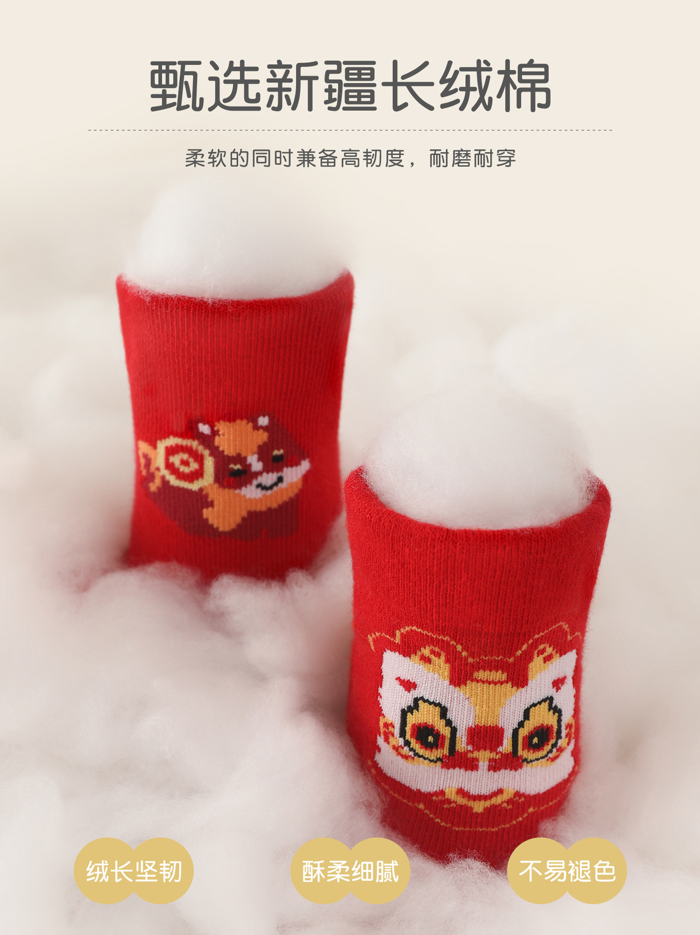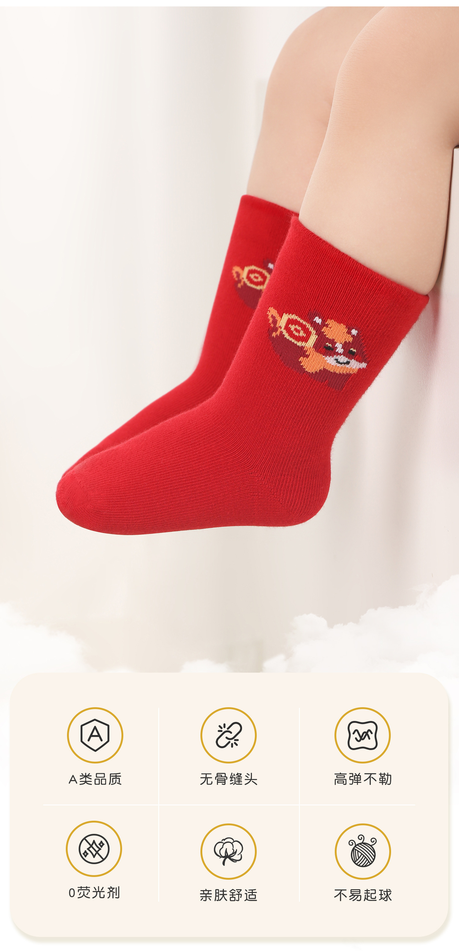 아기의 중간 튜브 양말 탄생 올해의 드래곤 레드 양말 새해 양말 신생아 유아 만화 축제