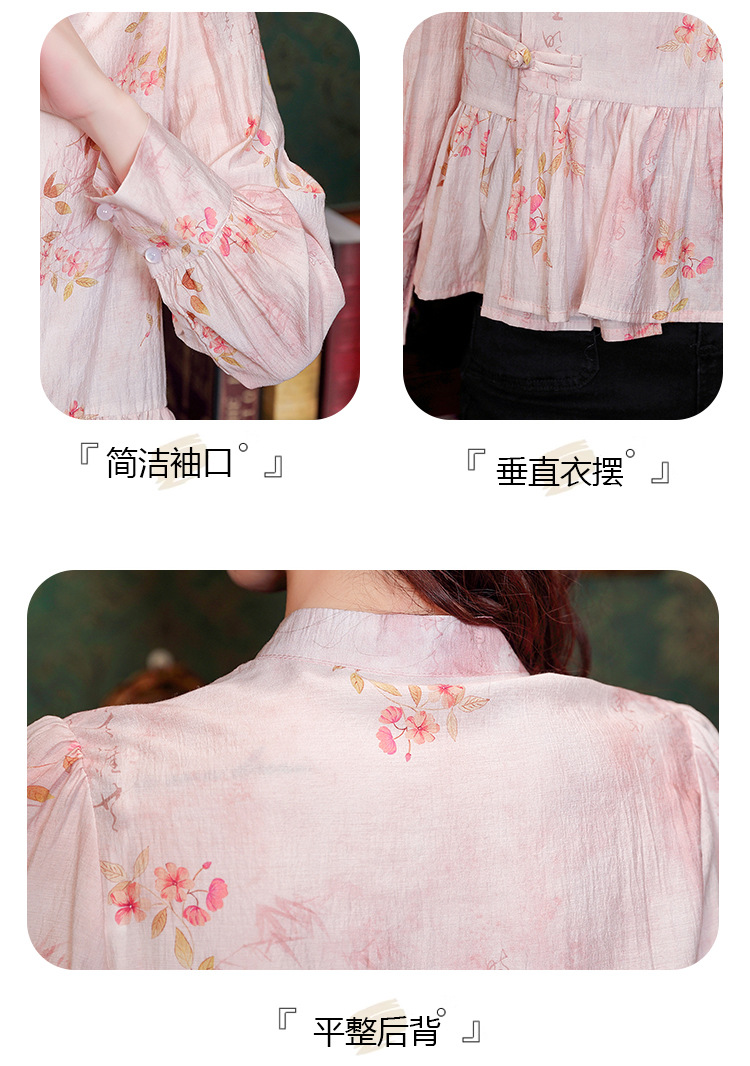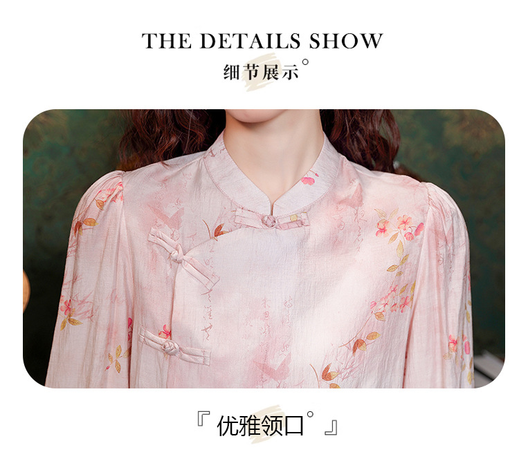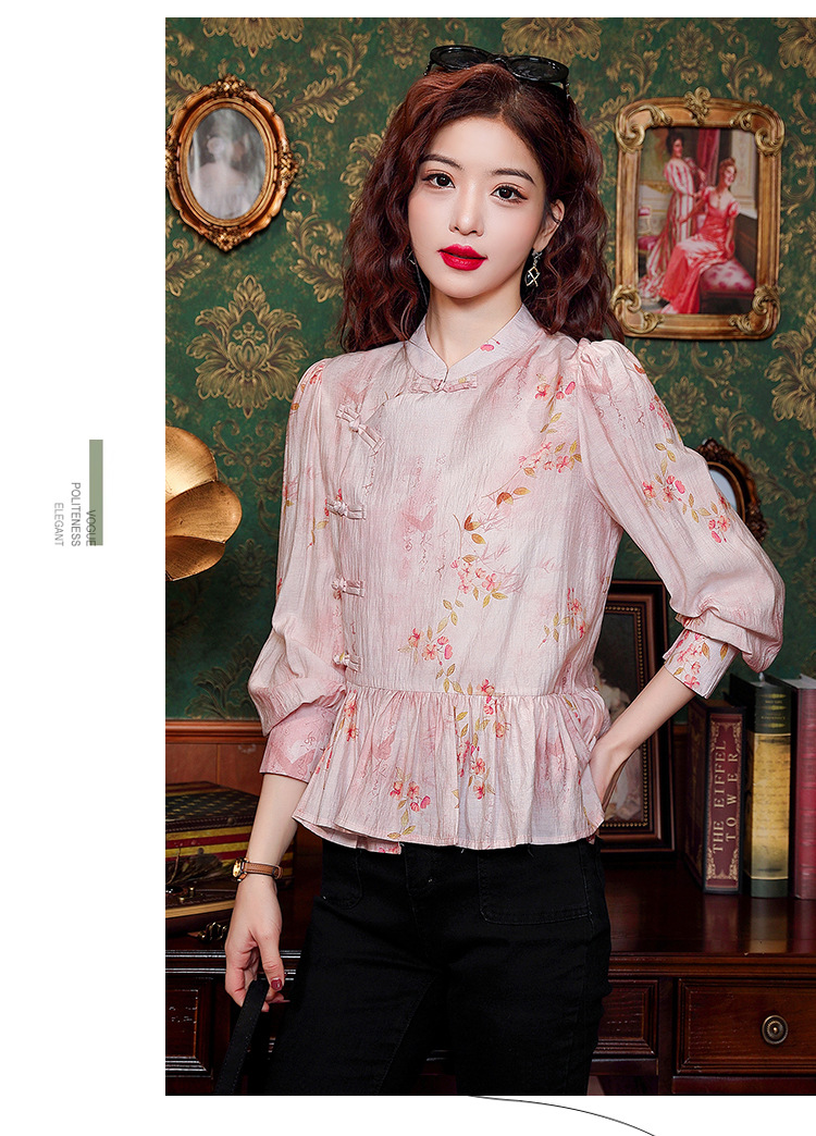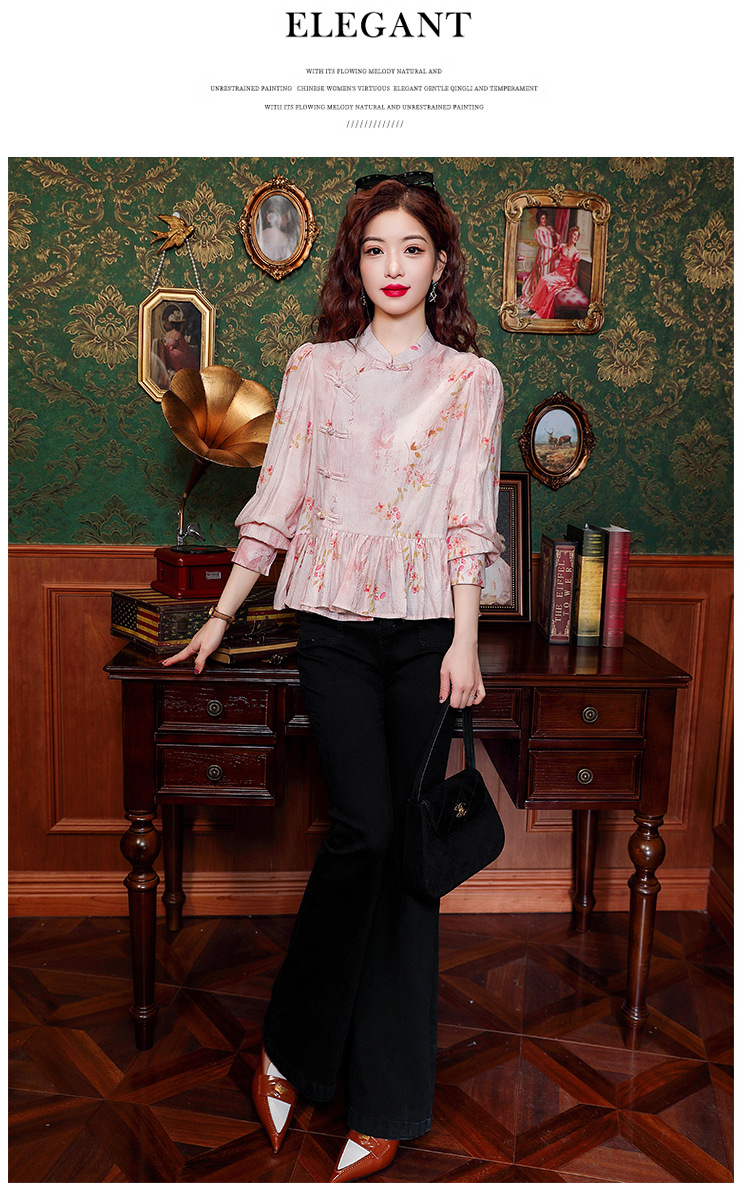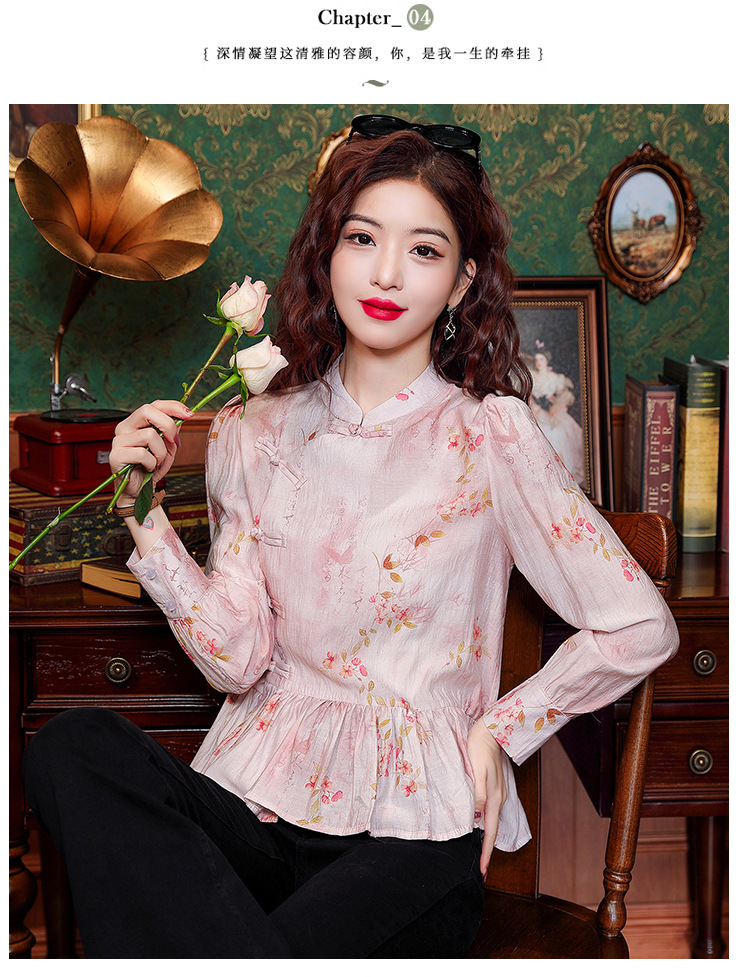새로운 중국 스타일 국가 스타일 꽃 쉬폰 셔츠 여성 여름 2024 새로운 달콤한 작은 셔츠 시대 감소 우아한 치마 탑