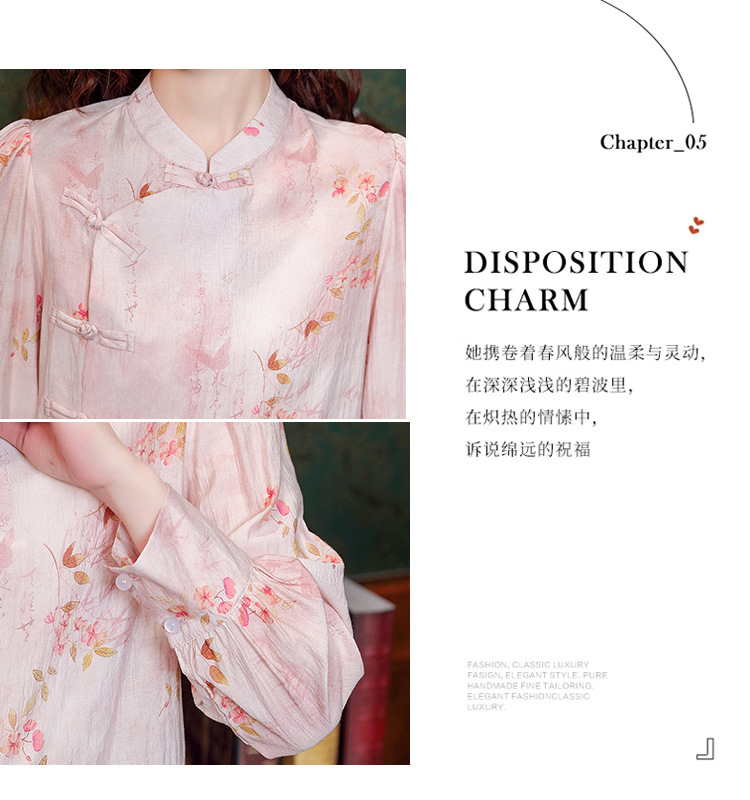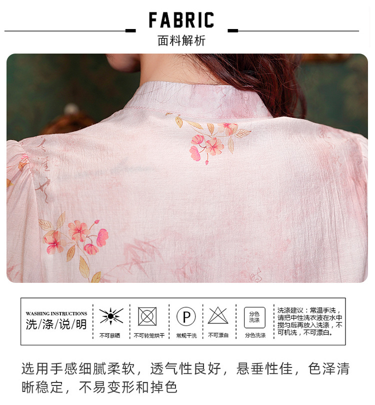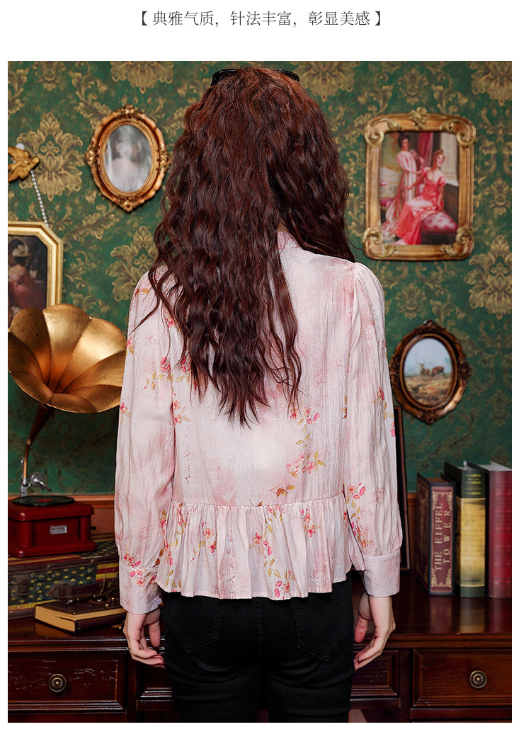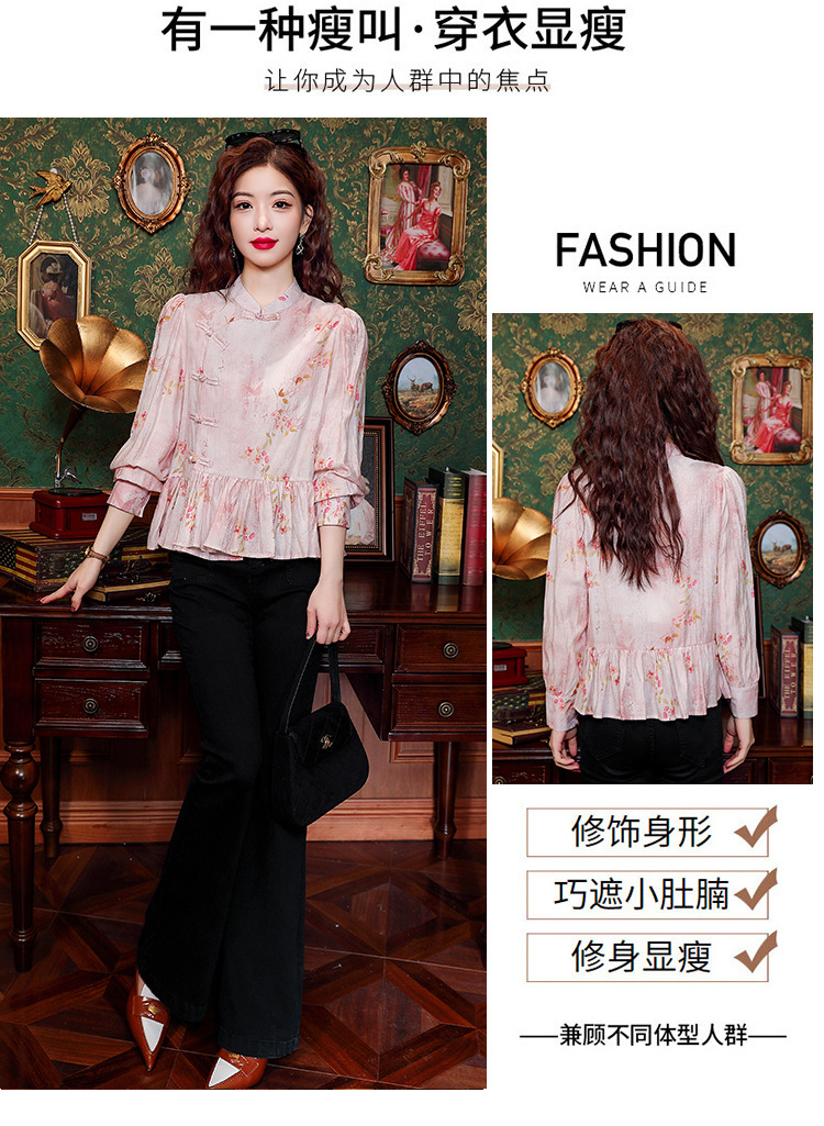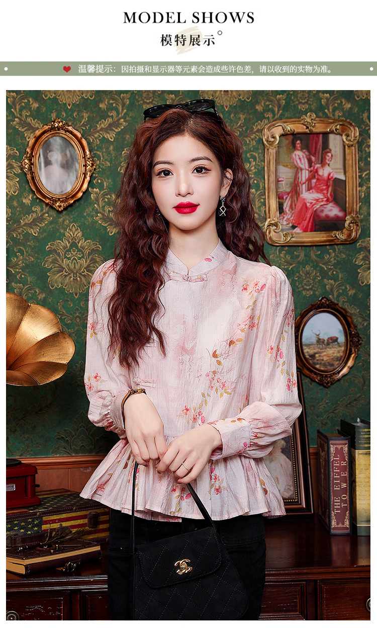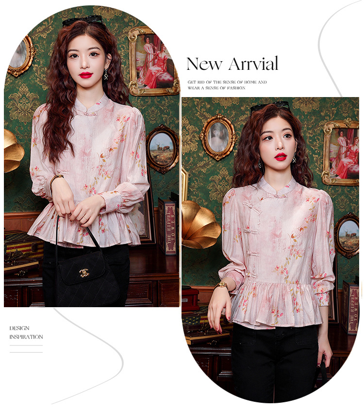 새로운 중국 스타일 국가 스타일 꽃 쉬폰 셔츠 여성 여름 2024 새로운 달콤한 작은 셔츠 시대 감소 우아한 치마 탑스토어 가기