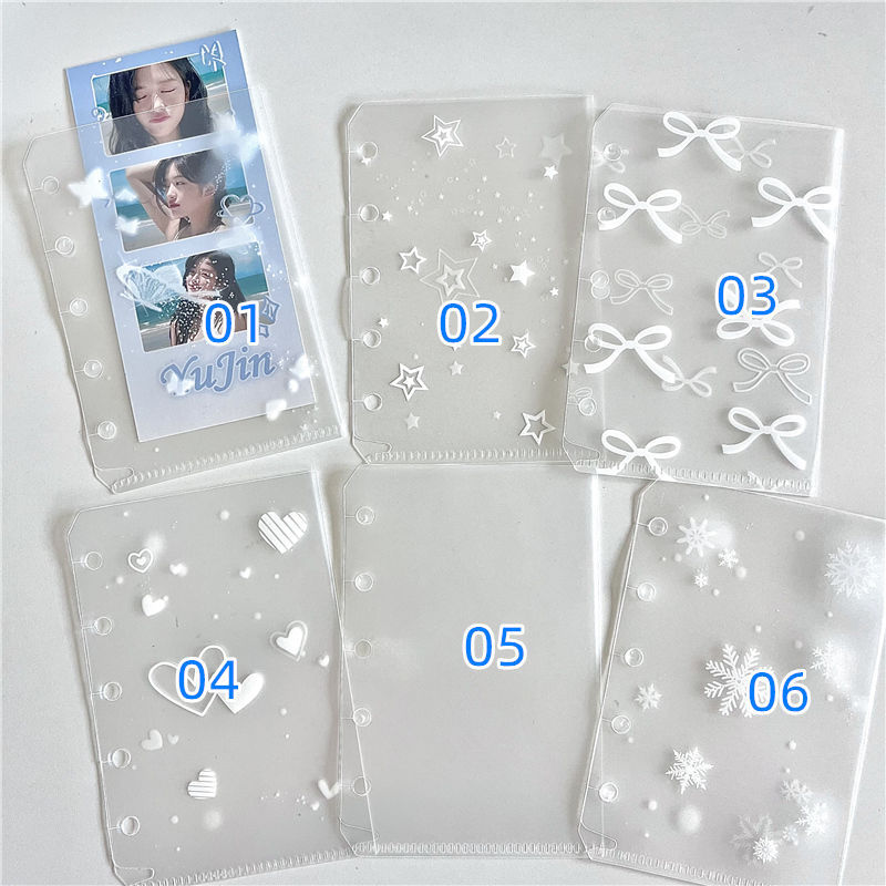M5 손 계정 일반 눈송이 잡화 느슨한 잎 저장 가방 손 계정 일치하는 카드 커버 사진 앨범 투명 플라스틱 방수 내부 페이지