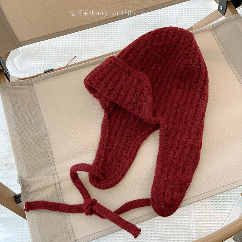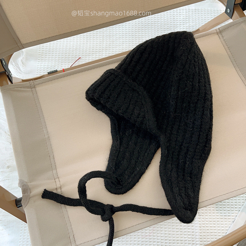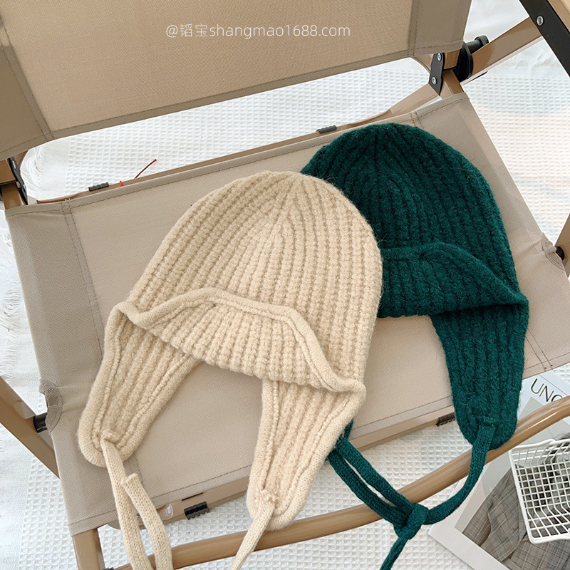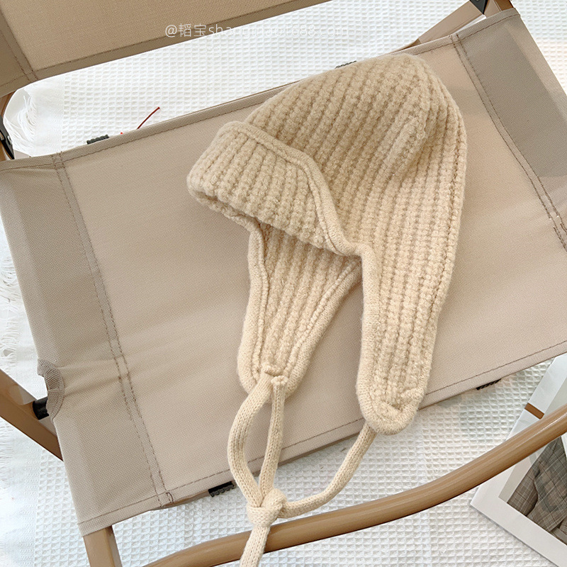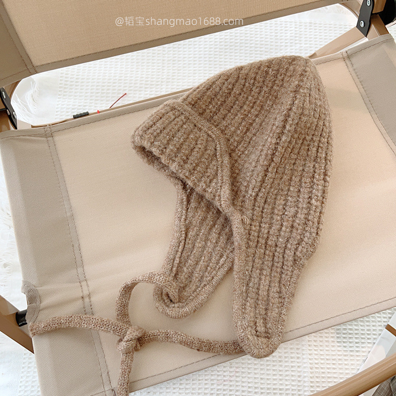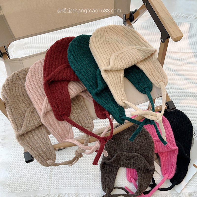 한국 어린이 니트 모자 귀 보호 모자 가을과 겨울 단색 레이스 따뜻한 모자 아기 겨울 착용 울 모자