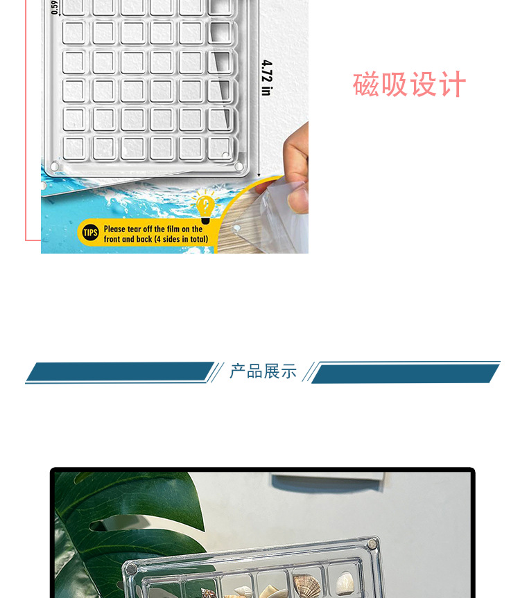 TEMU SHEIN 아크릴 마그네틱 36 젤 쉘 보석 디스플레이 저장 상자 높은 투명 보석 장식 상자 브래킷