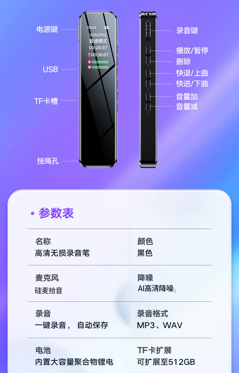 녹음 펜 전문 고화질 소음 감소 학생 클래스 울트라 긴 대기 레코더 회의 레코더 텍스트