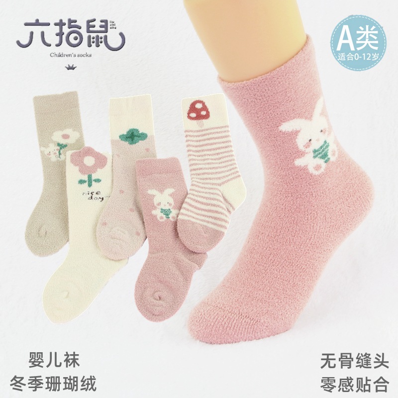 6 손가락 마우스 어린이 양말 아기 소년의 가을과 겨울 산호 양털을 두껍게 기모 테리 따뜻한 아기 양말 겨울