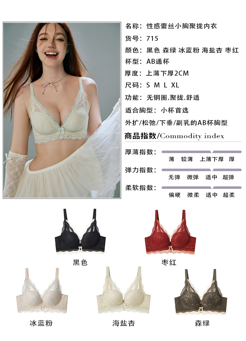 qingma715 여성용 속옷 작은 가슴을 위한 푸쉬업 브라 보조 가슴 조절 브라 레이스 브라 편안한 푸쉬업