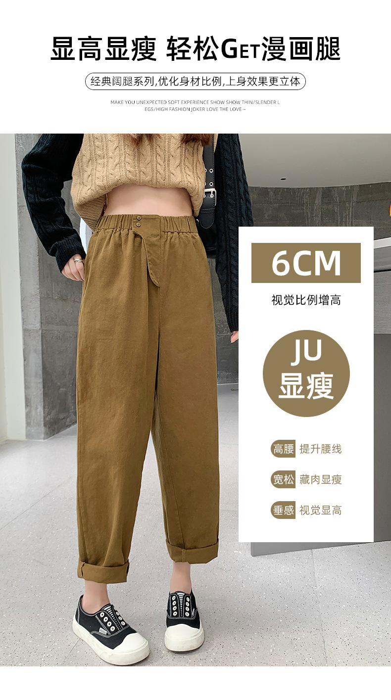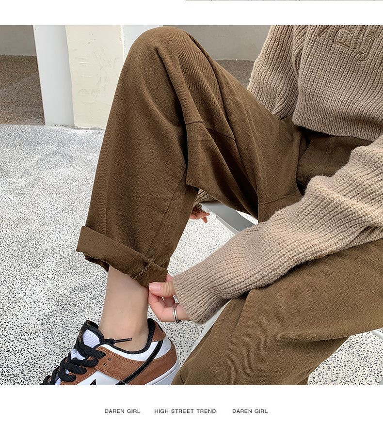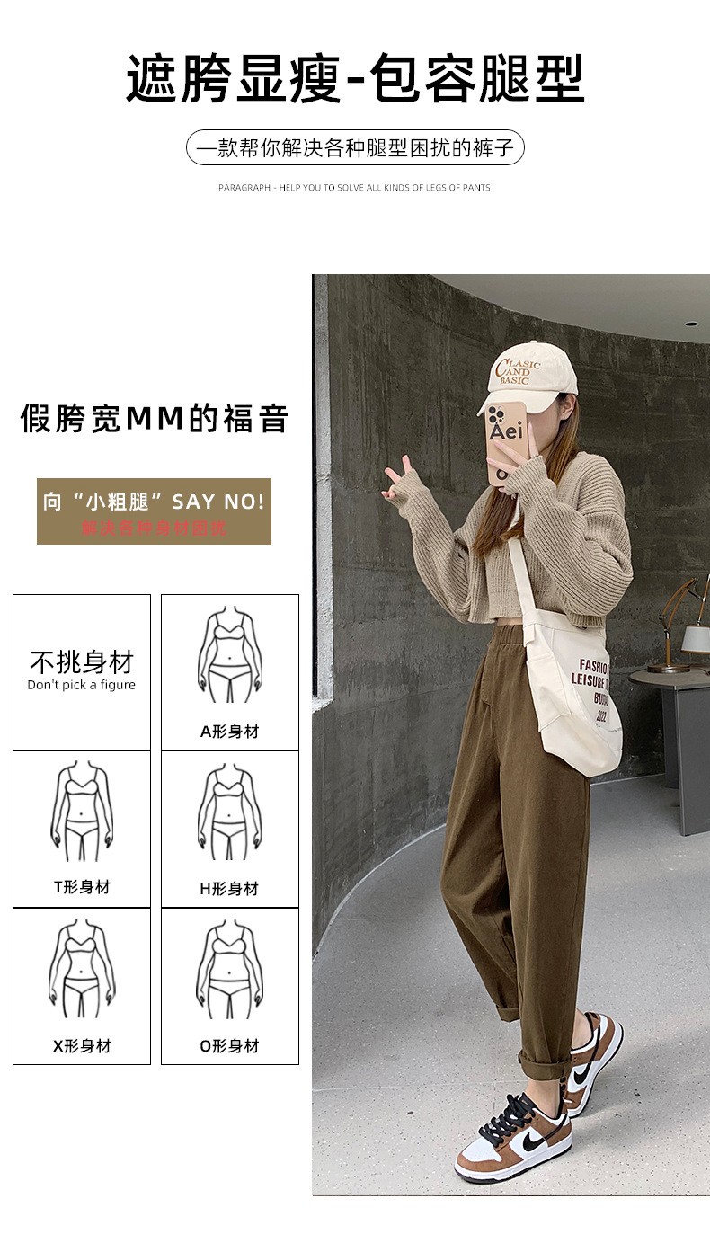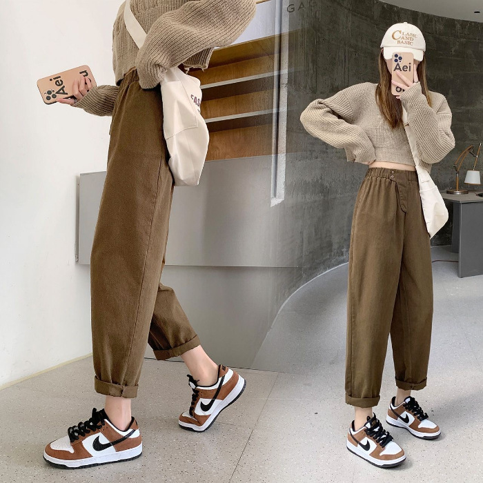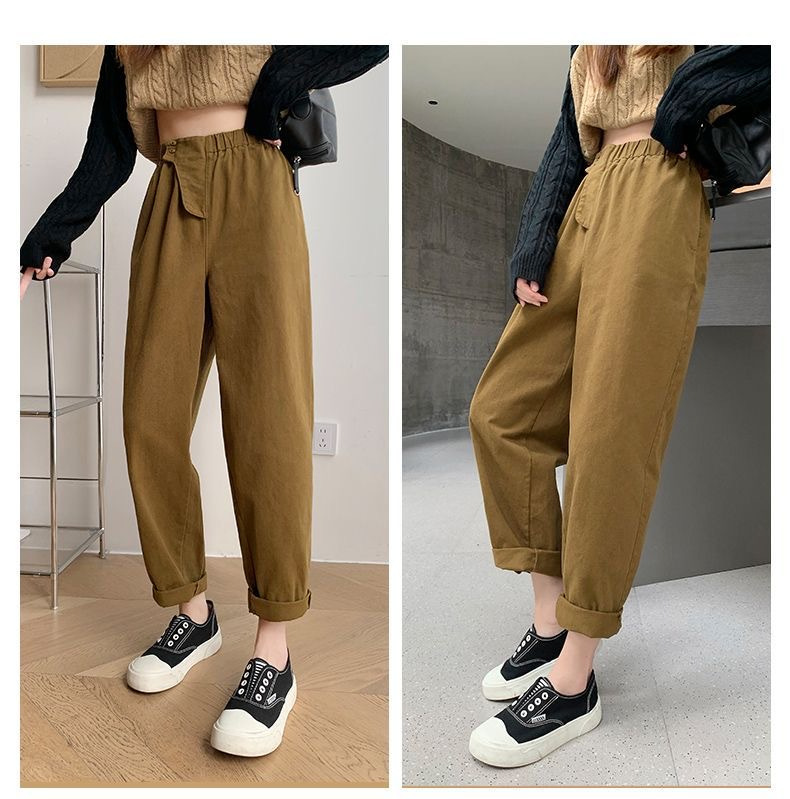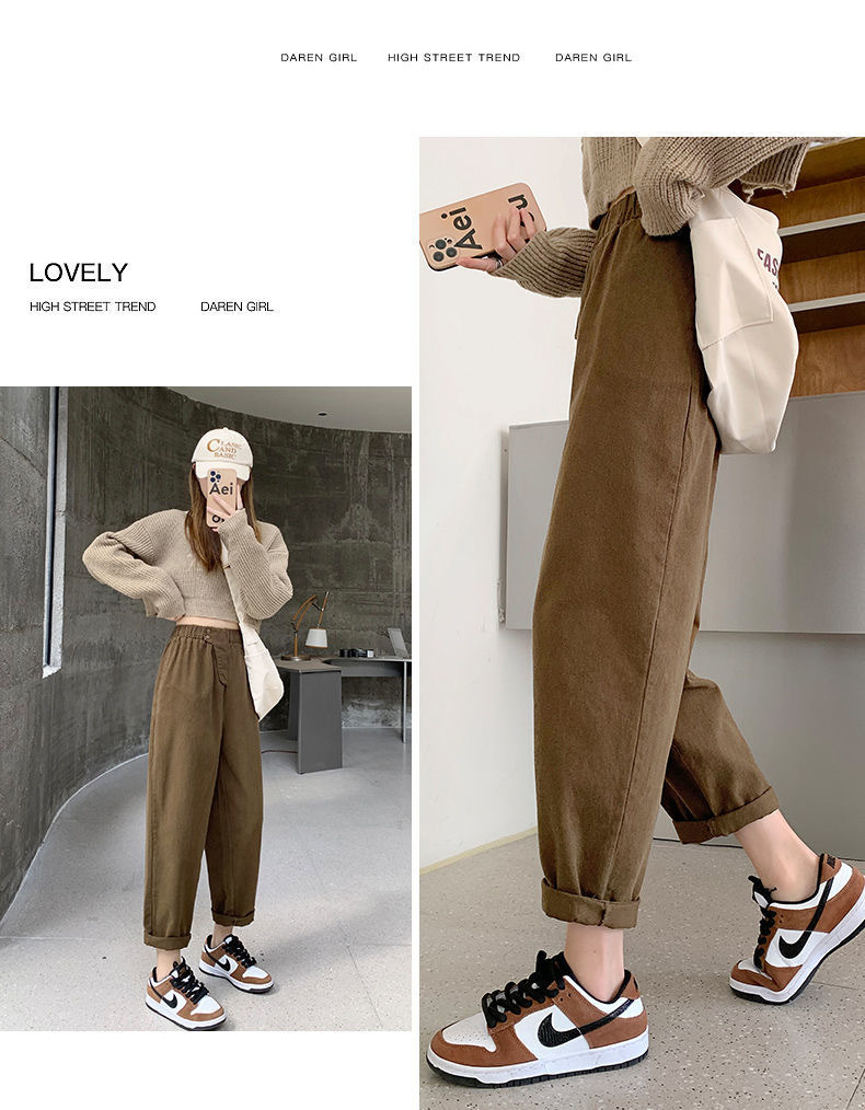 두꺼운 순면 2025 봄과 가을 새로운 도착 Harlan 당근 바지 여성용 단색 높은 허리 슬리밍 블러머 바지스토어 가기