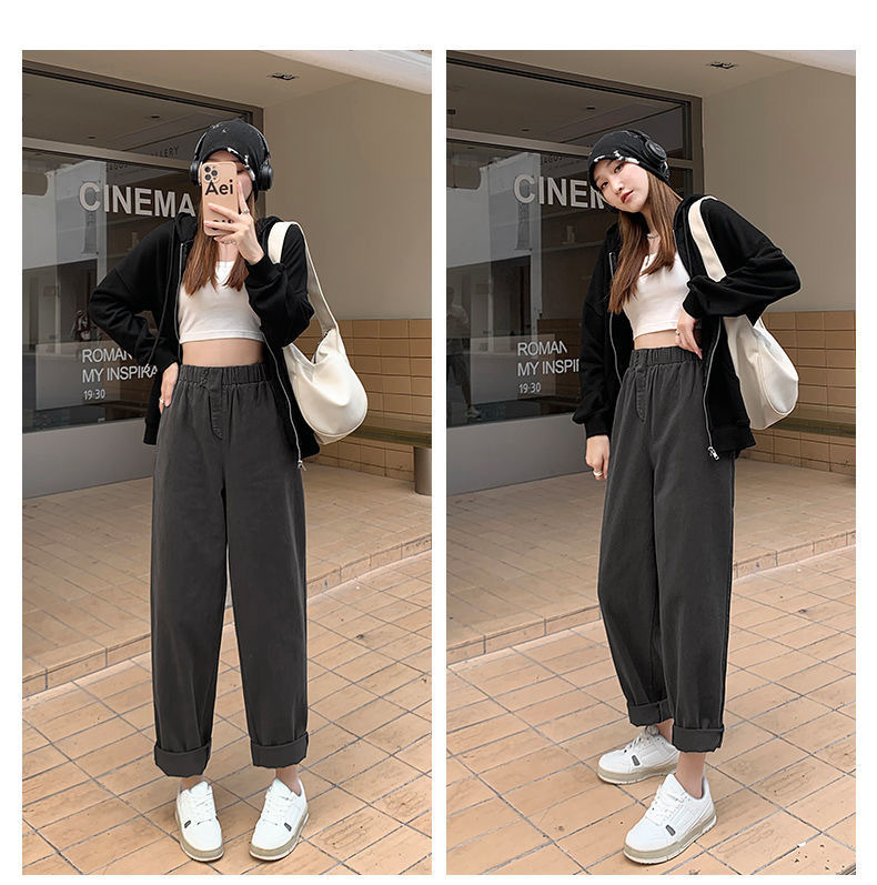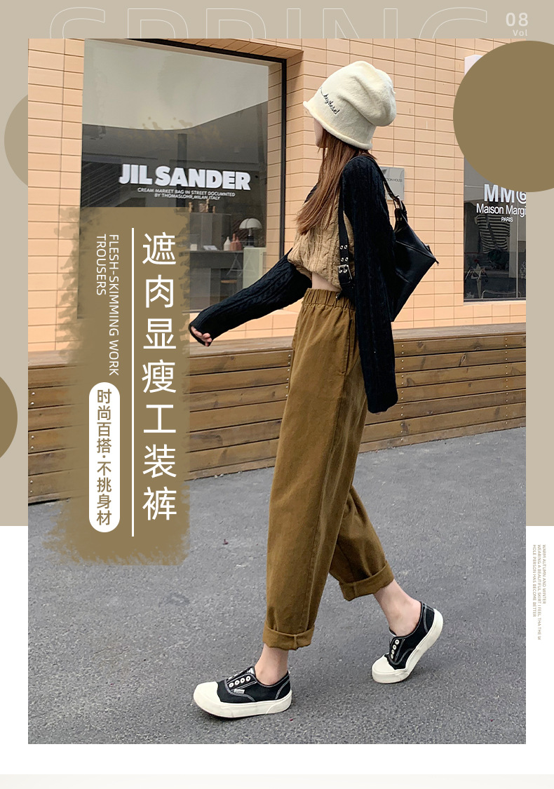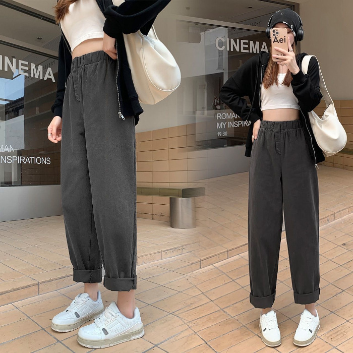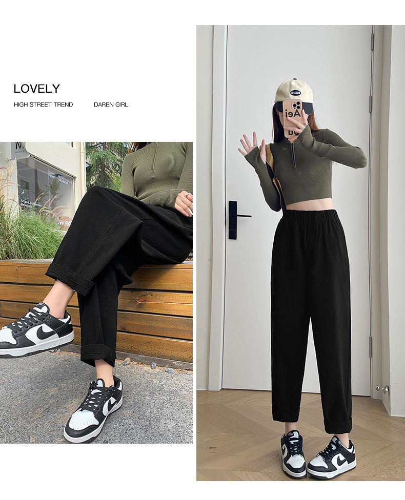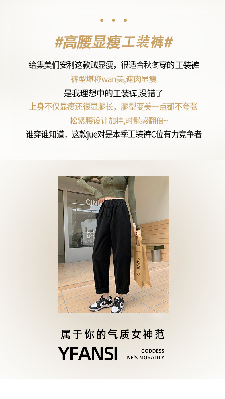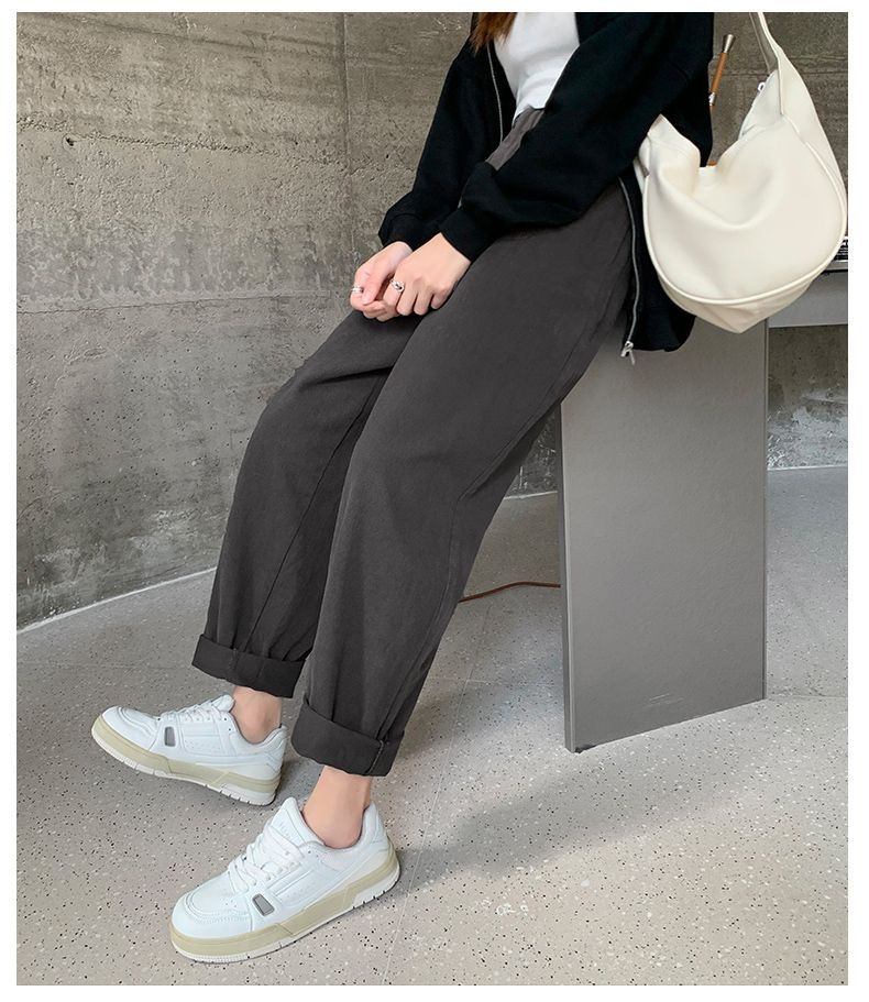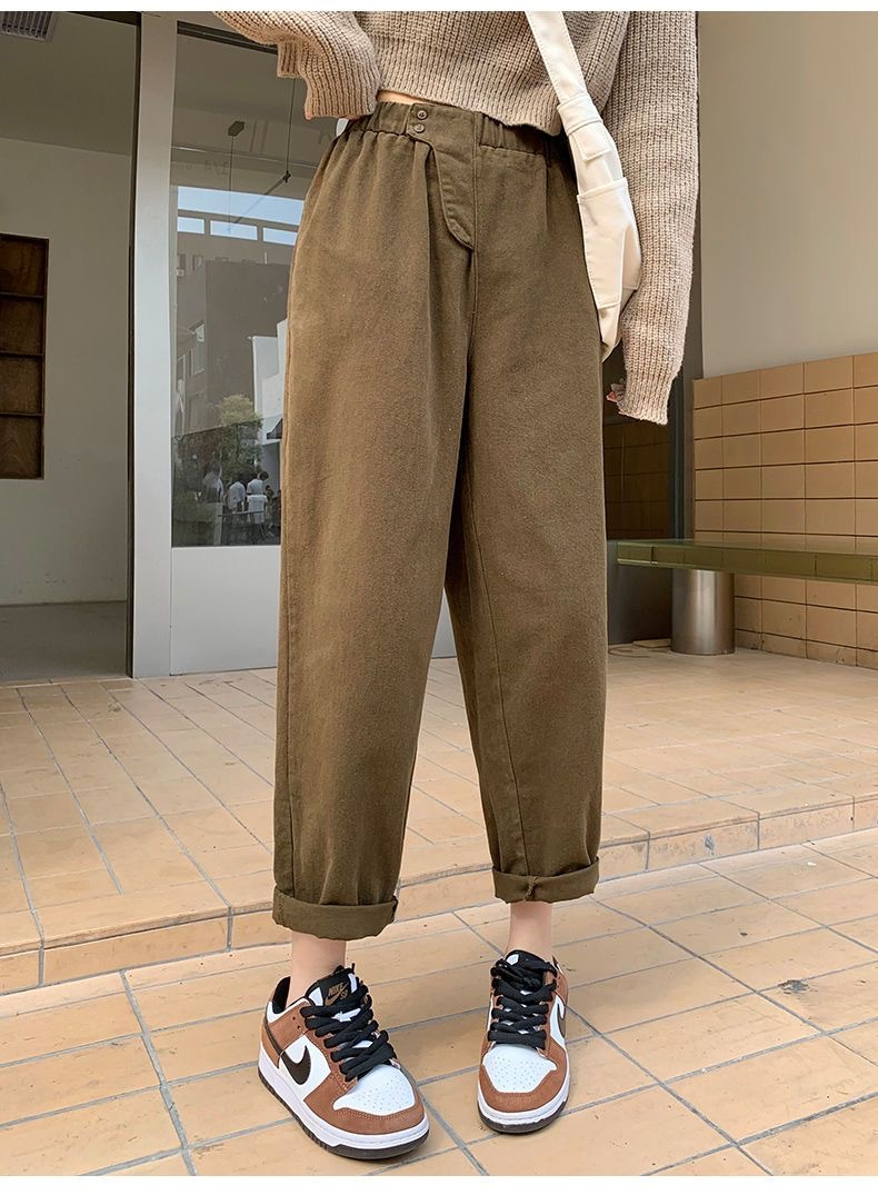 두꺼운 순면 2025 봄과 가을 새로운 도착 Harlan 당근 바지 여성용 단색 높은 허리 슬리밍 블러머 바지스토어 가기
