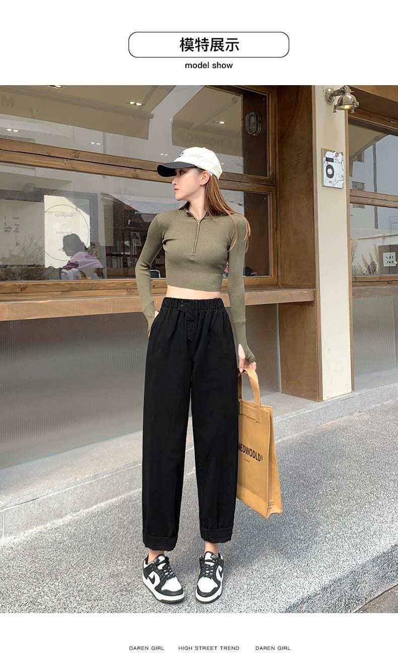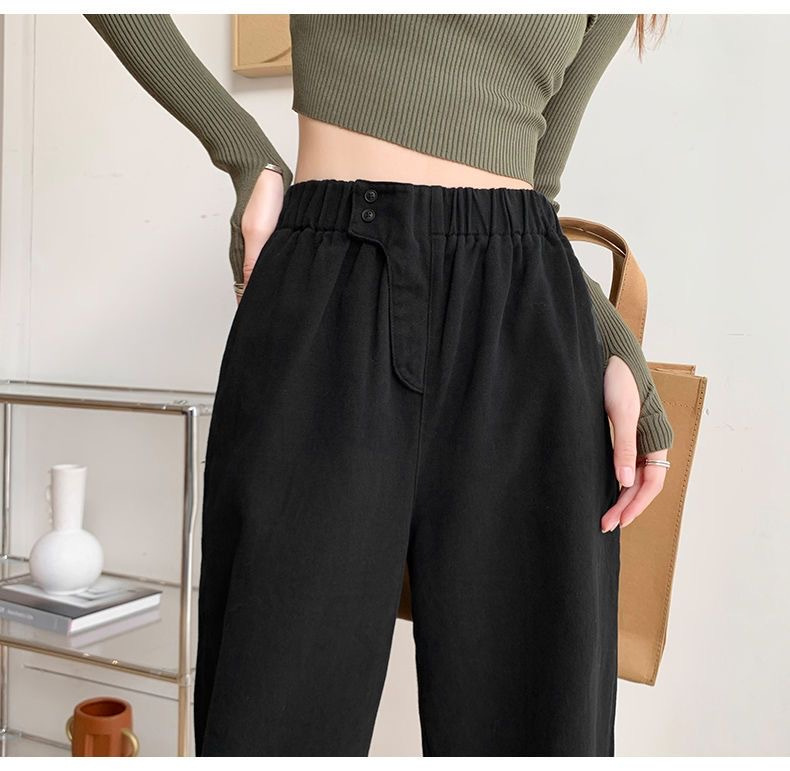 두꺼운 순면 2025 봄과 가을 새로운 도착 Harlan 당근 바지 여성용 단색 높은 허리 슬리밍 블러머 바지