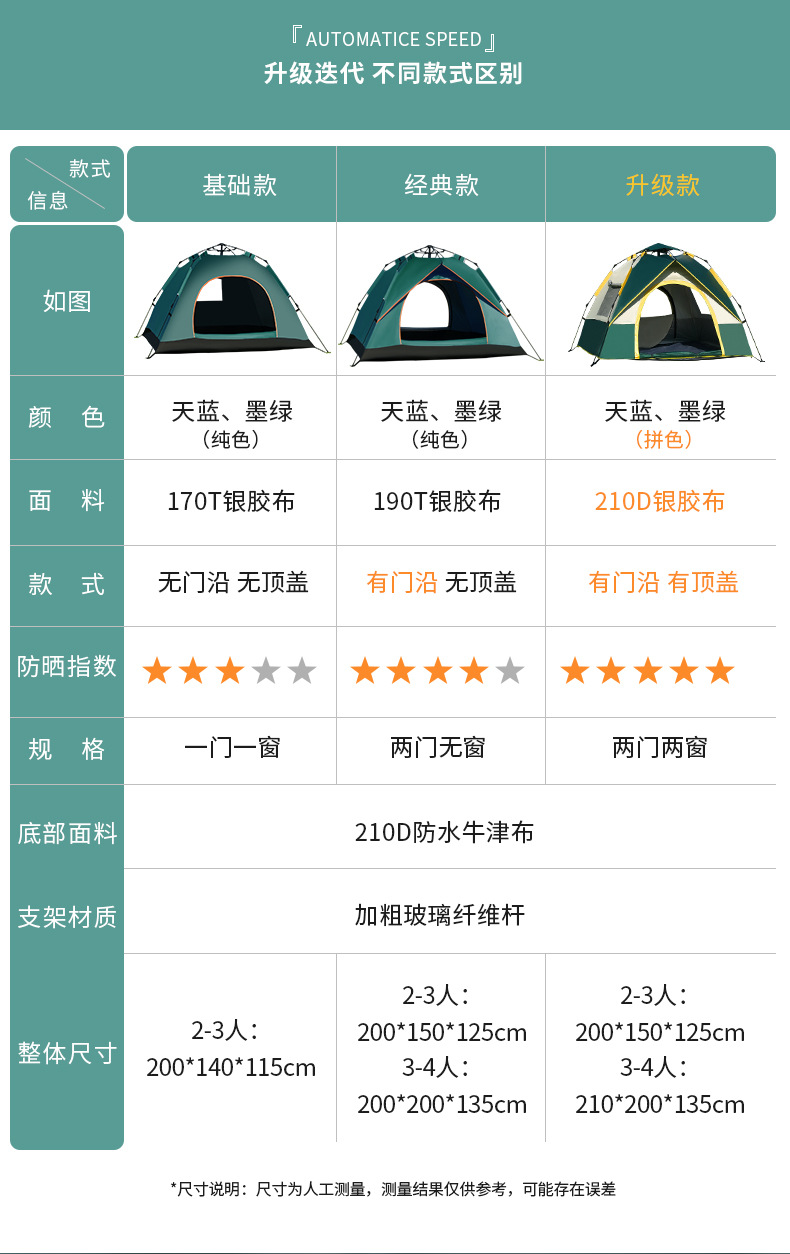 텐트 야외 두꺼운 캠핑 캠핑 하룻밤 휴대용 접기 자동 홈 선 스크린 방직 빠른 캠핑