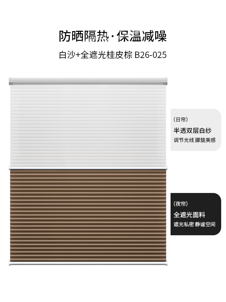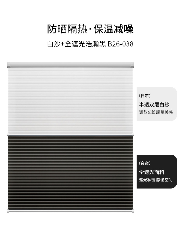 낮과 밤 벌집 커튼 펀치 프리 구슬 단열 태양 보호 음영 소음 감소 셔터 커튼 가정용 전기 침실 햇빛스토어 가기