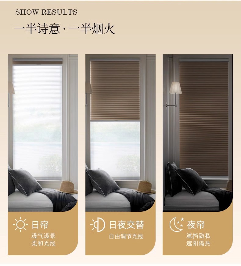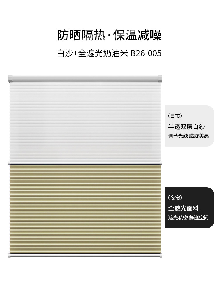 낮과 밤 벌집 커튼 펀치 프리 구슬 단열 태양 보호 음영 소음 감소 셔터 커튼 가정용 전기 침실 햇빛