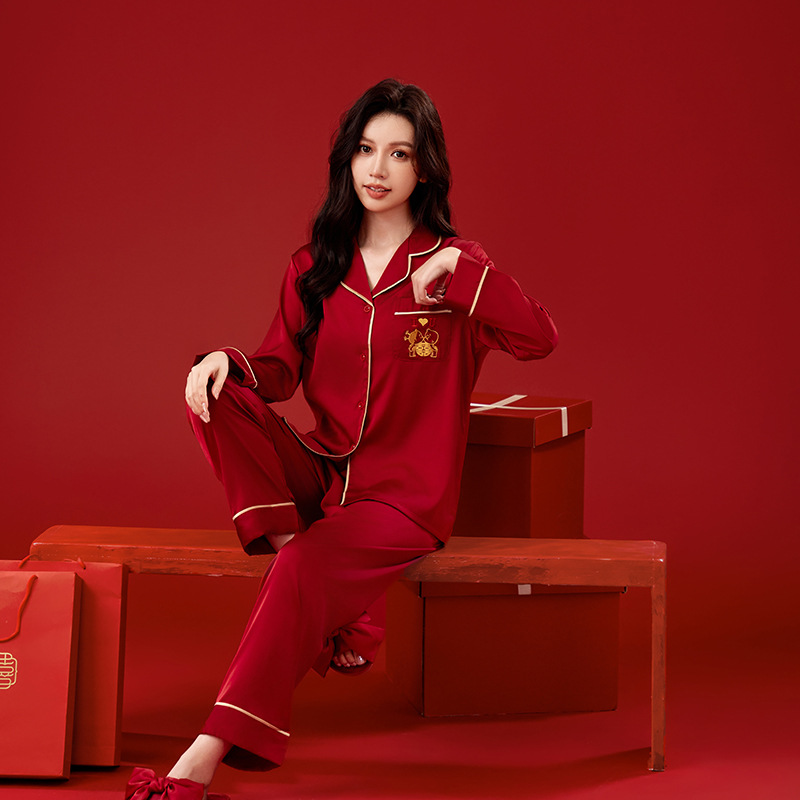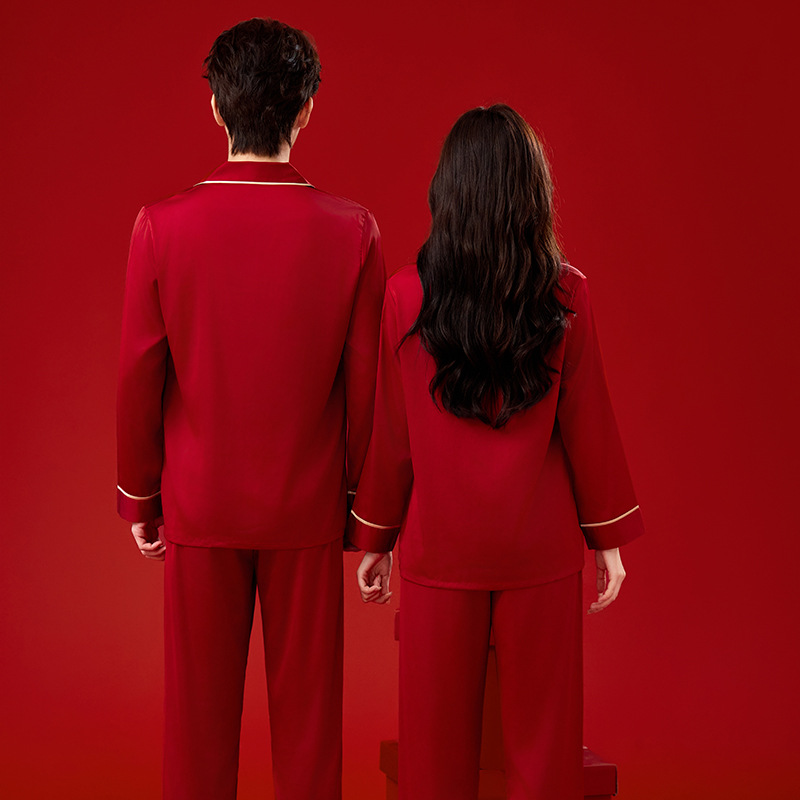 커플 잠옷 결혼식 신혼 아이스 실크 봄과 가을 생활 년 붉은 남자와 여자의 결혼식 높은 수준의 홈 의류 세트