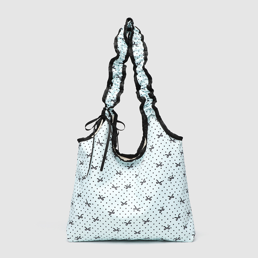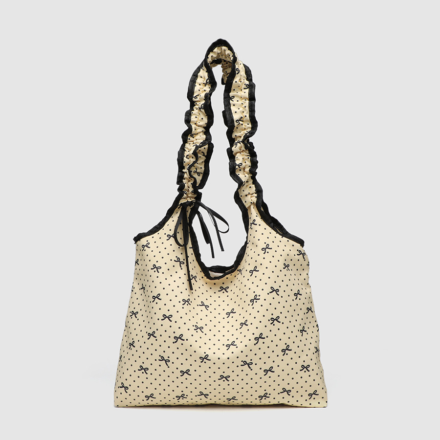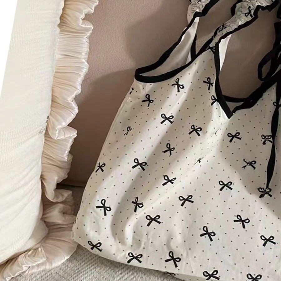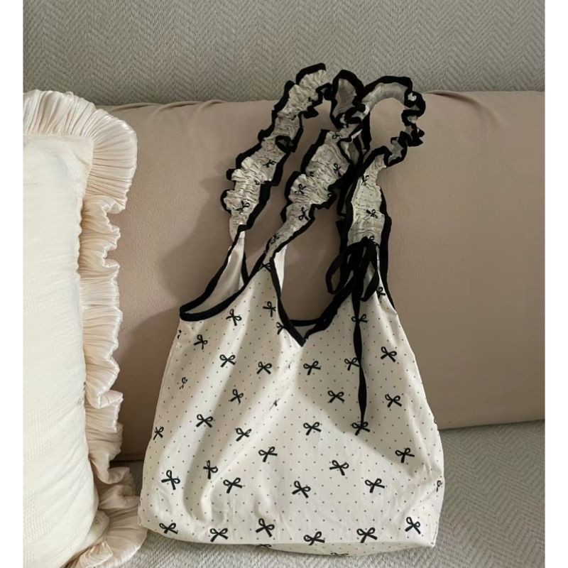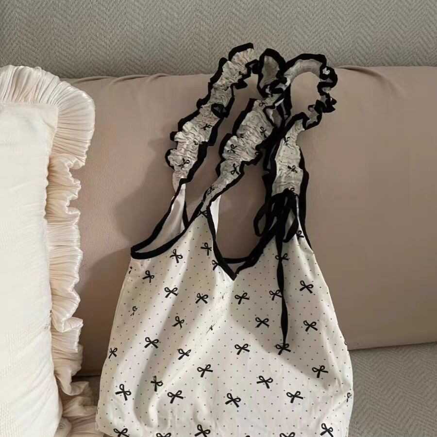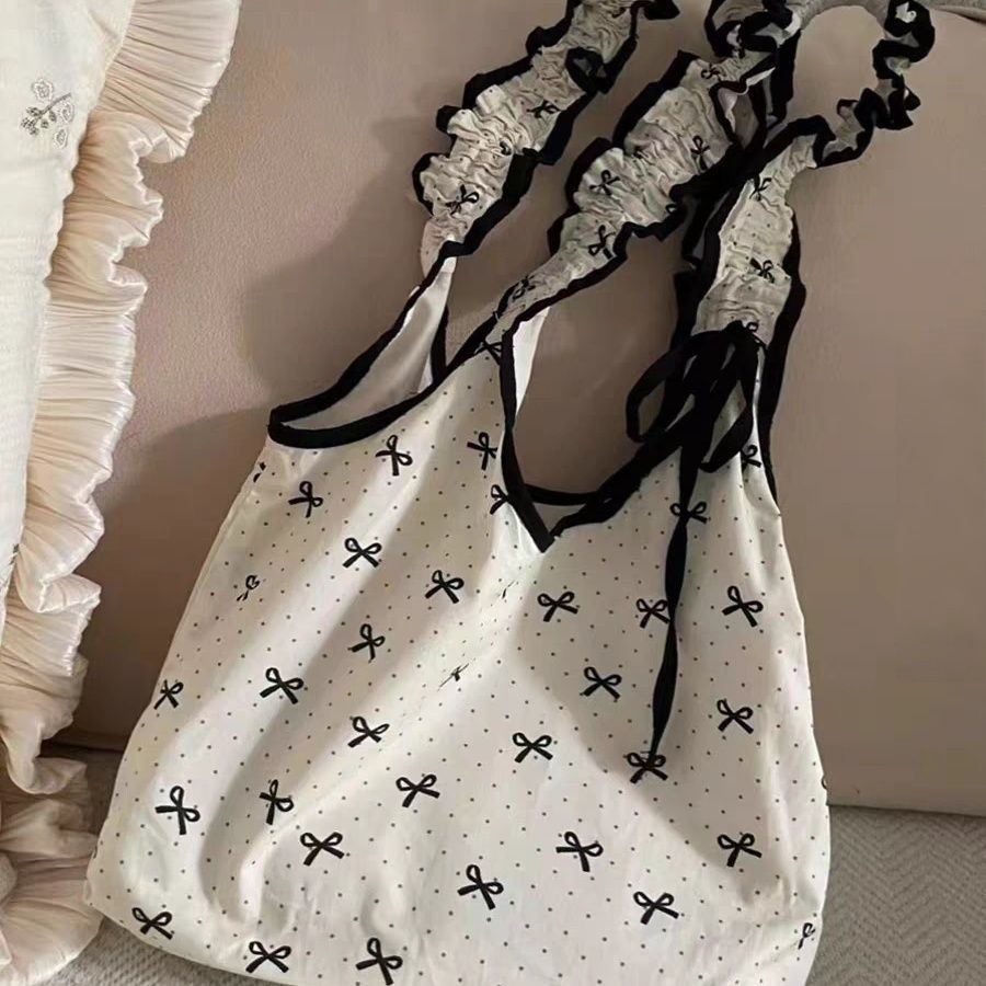 한국 틈새 활 도트 캔버스 가방 달콤한 소녀 드로우 스트링 주름 핸드백 학생 통근 어깨 가방스토어 가기