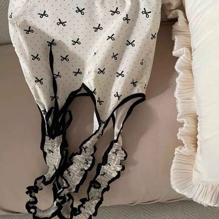 한국 틈새 활 도트 캔버스 가방 달콤한 소녀 드로우 스트링 주름 핸드백 학생 통근 어깨 가방