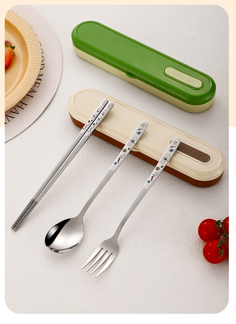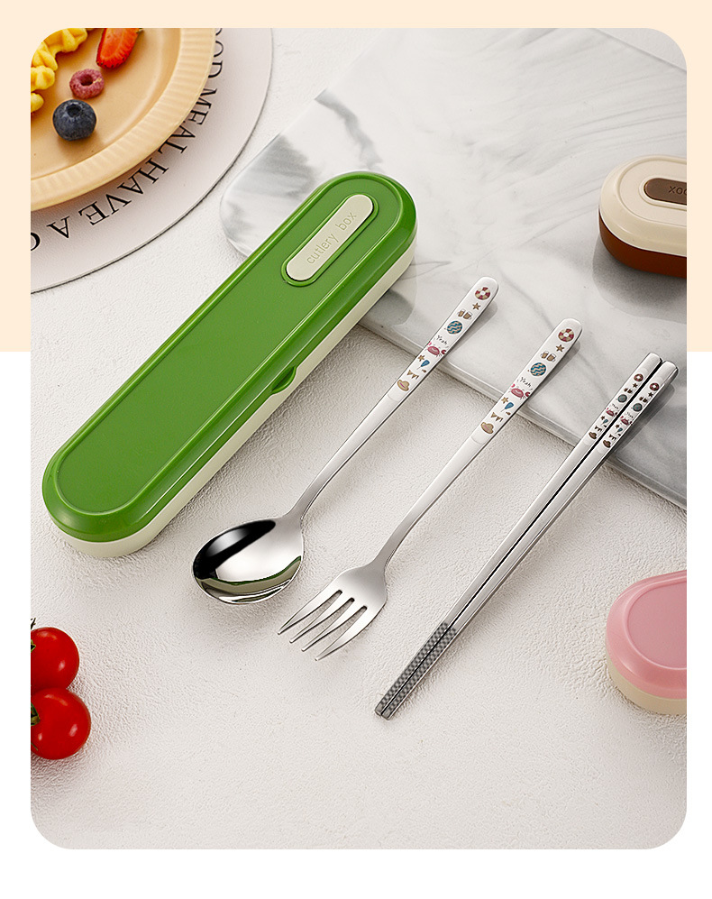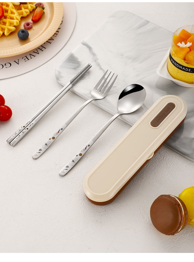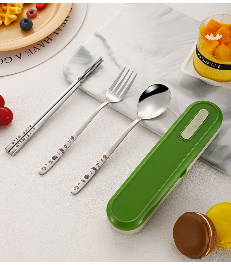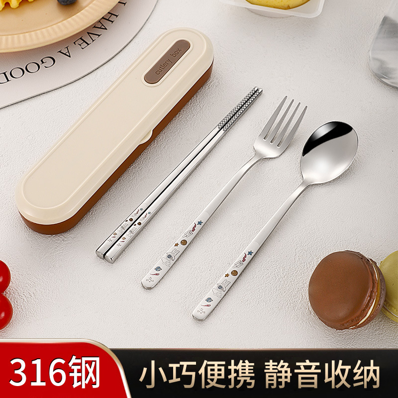 316 휴대용 스테인리스 젓가락 숟가락 3 조각 학생 단일 사무실 노동자 야외 포크 식기 세트스토어 가기