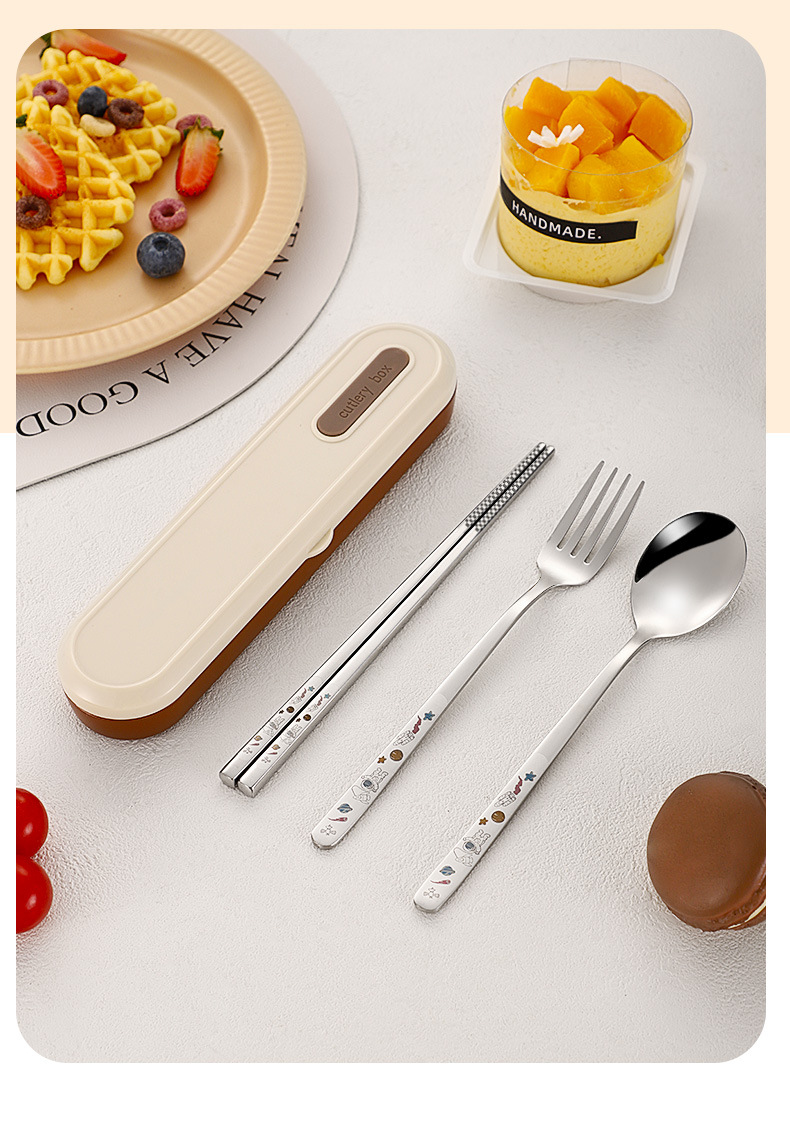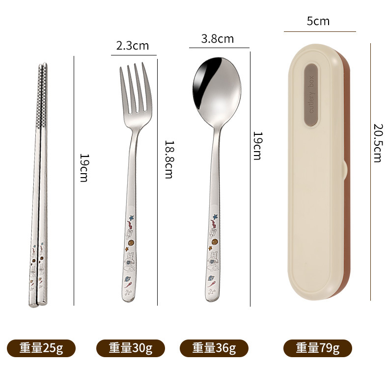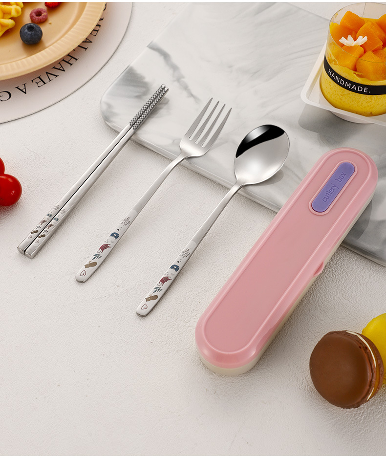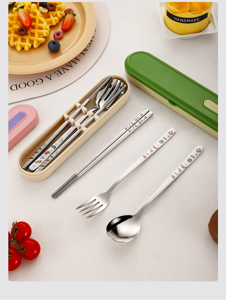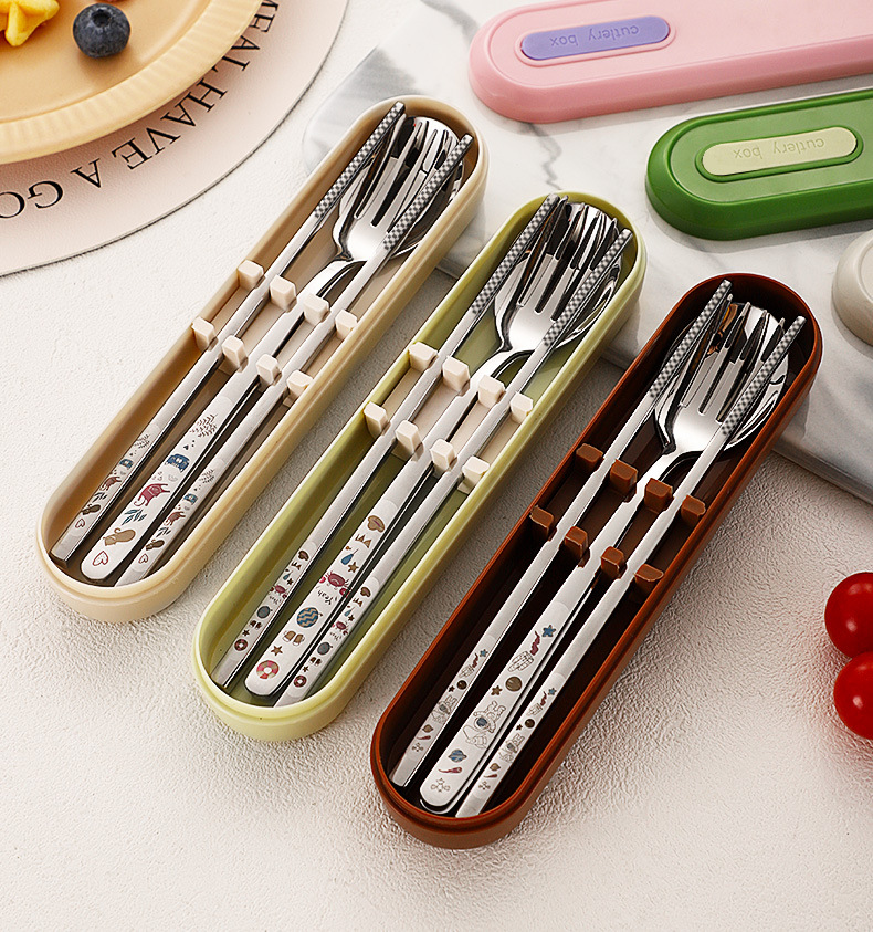 316 휴대용 스테인리스 젓가락 숟가락 3 조각 학생 단일 사무실 노동자 야외 포크 식기 세트스토어 가기