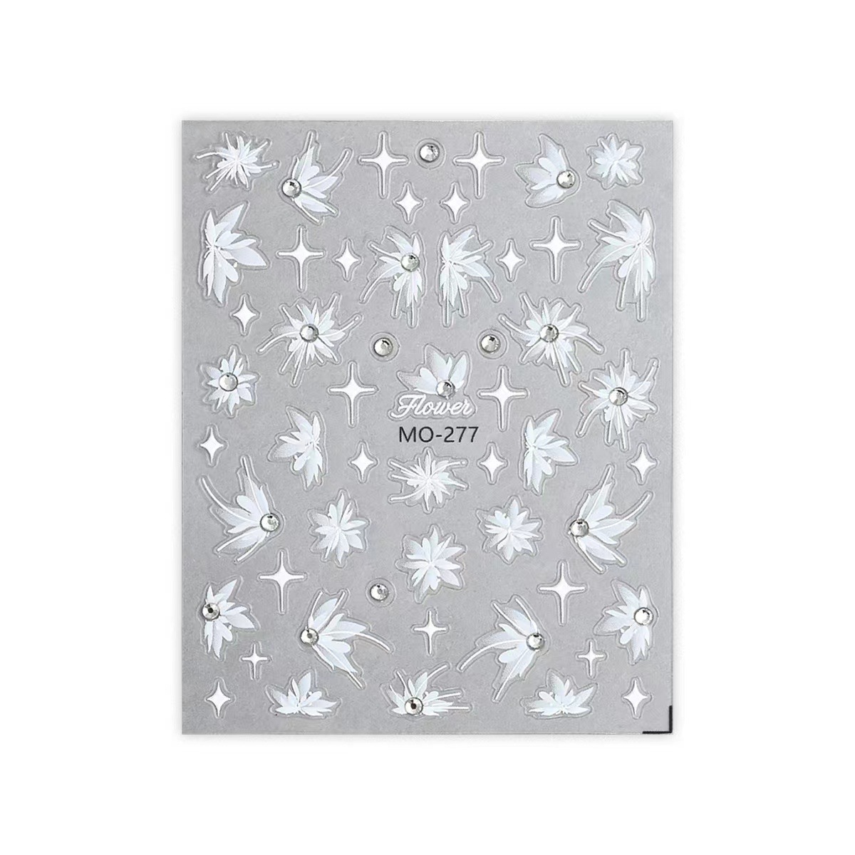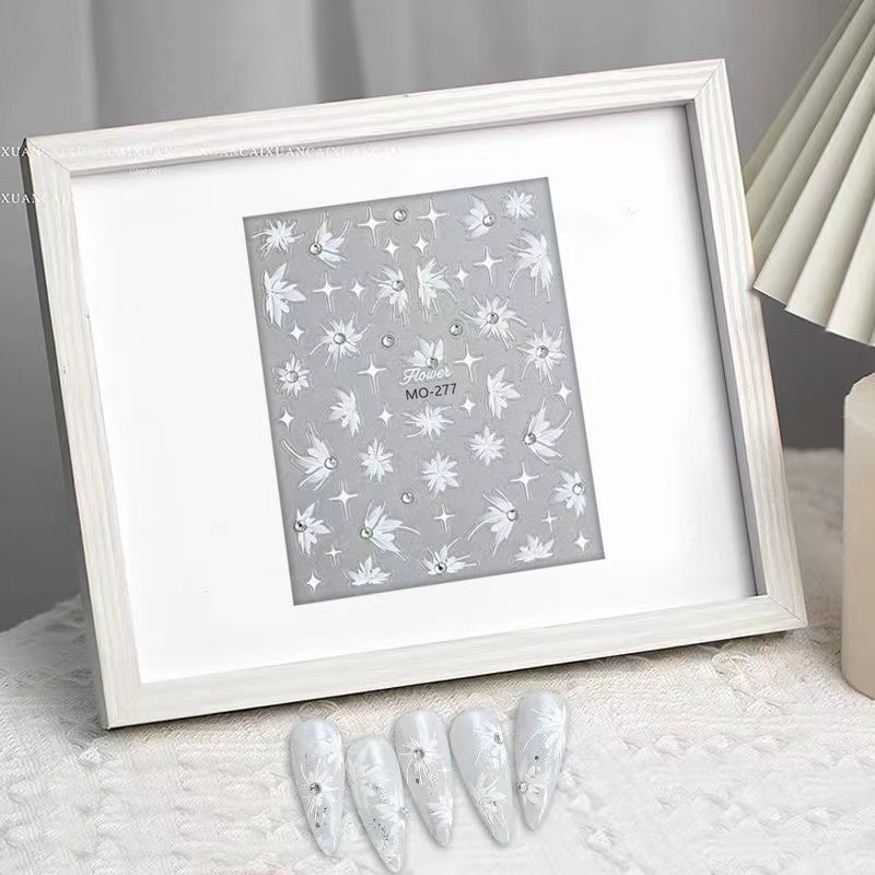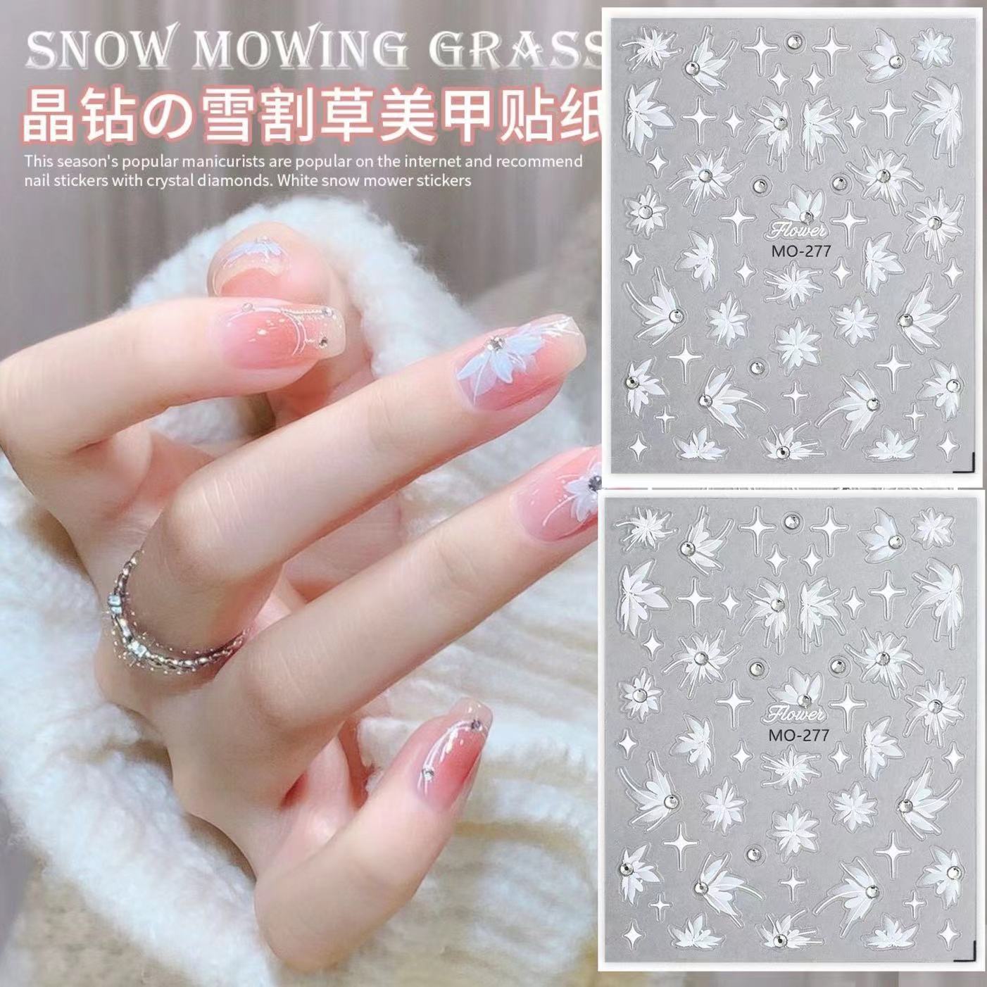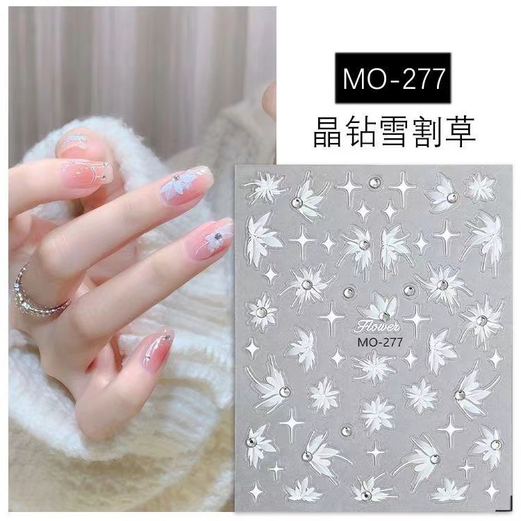 Net Celebrant 새로운 크리스탈 다이아몬드 눈 깎기 네일 아트 릴리프 스티커 5D 3 차원 라인스톤 화이트 플라워 네일 스티커 장식