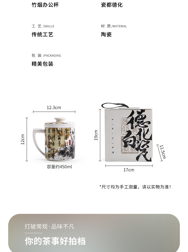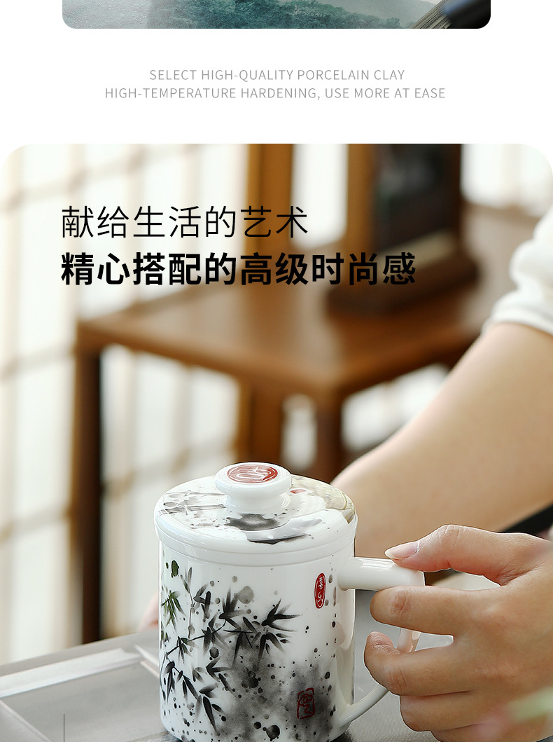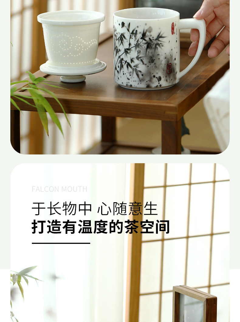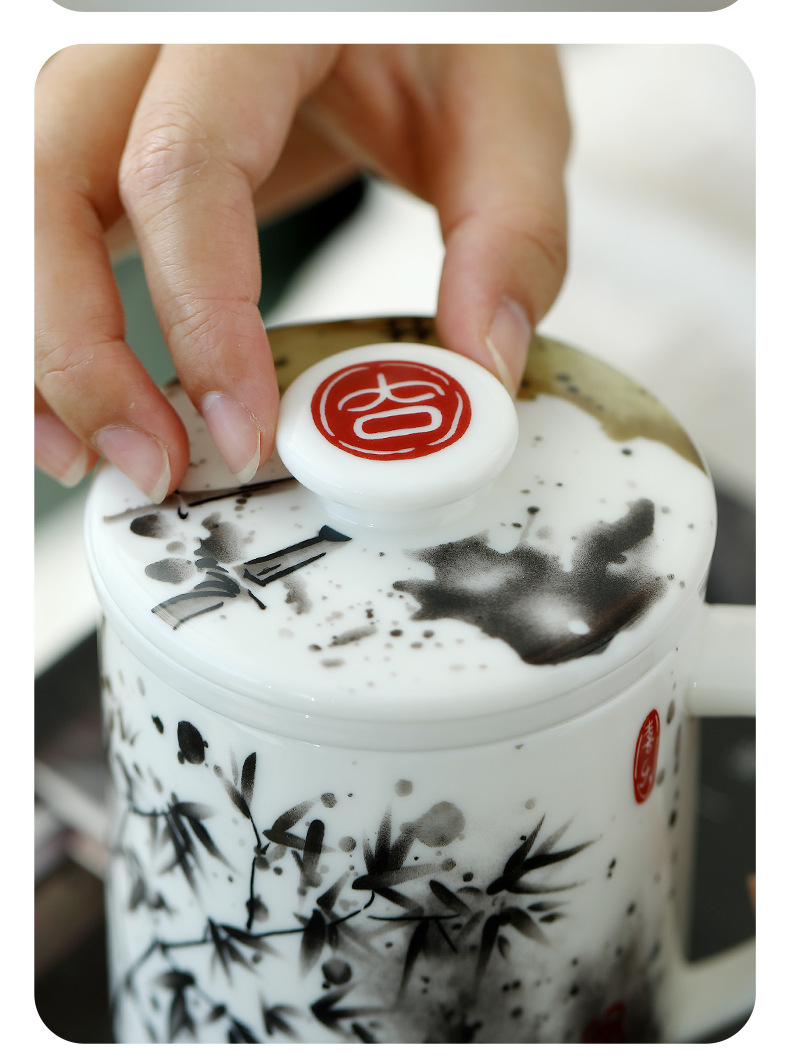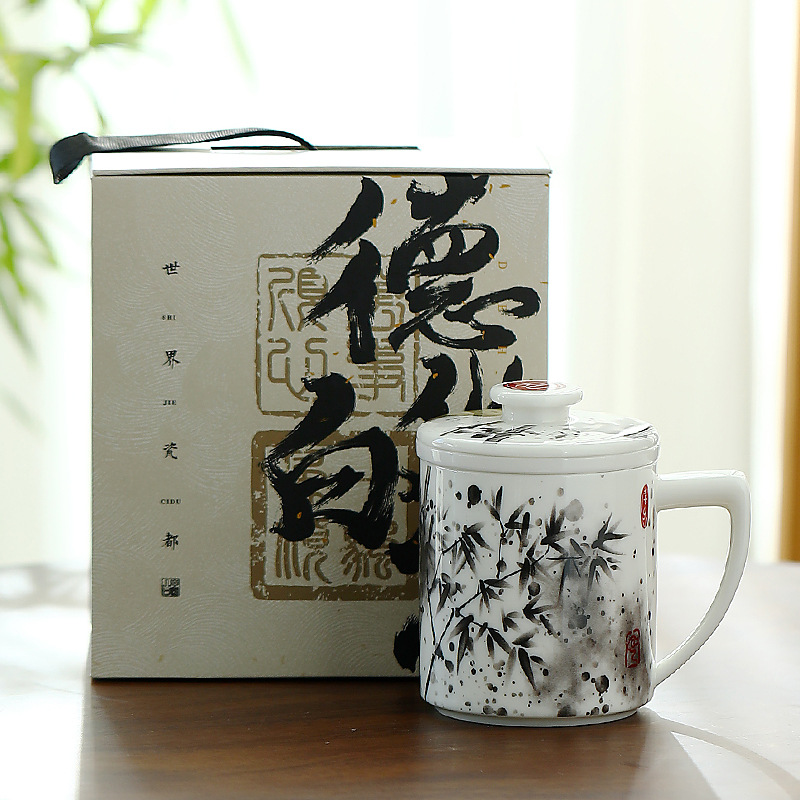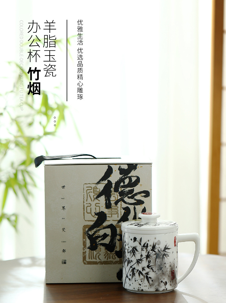• 잉크 대나무 양고기 지방 옥 도자기 사무실 컵 선물 상자