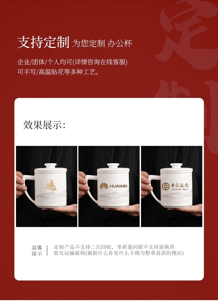 Dehua mutton 옥 티 컵 개인 사무실 컵 세라믹 선물 상자 차 분리 머그잔 필터 로고