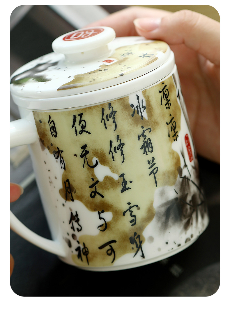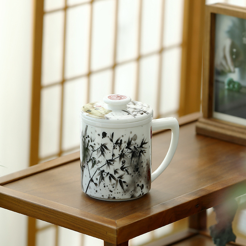 • 잉크 대나무 양고기 지방 옥 도자기 사무실 컵