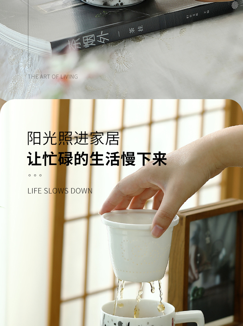 Dehua mutton 옥 티 컵 개인 사무실 컵 세라믹 선물 상자 차 분리 머그잔 필터 로고스토어 가기