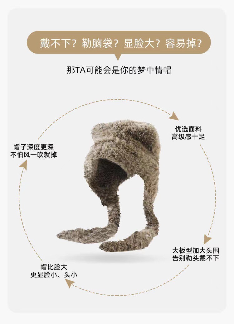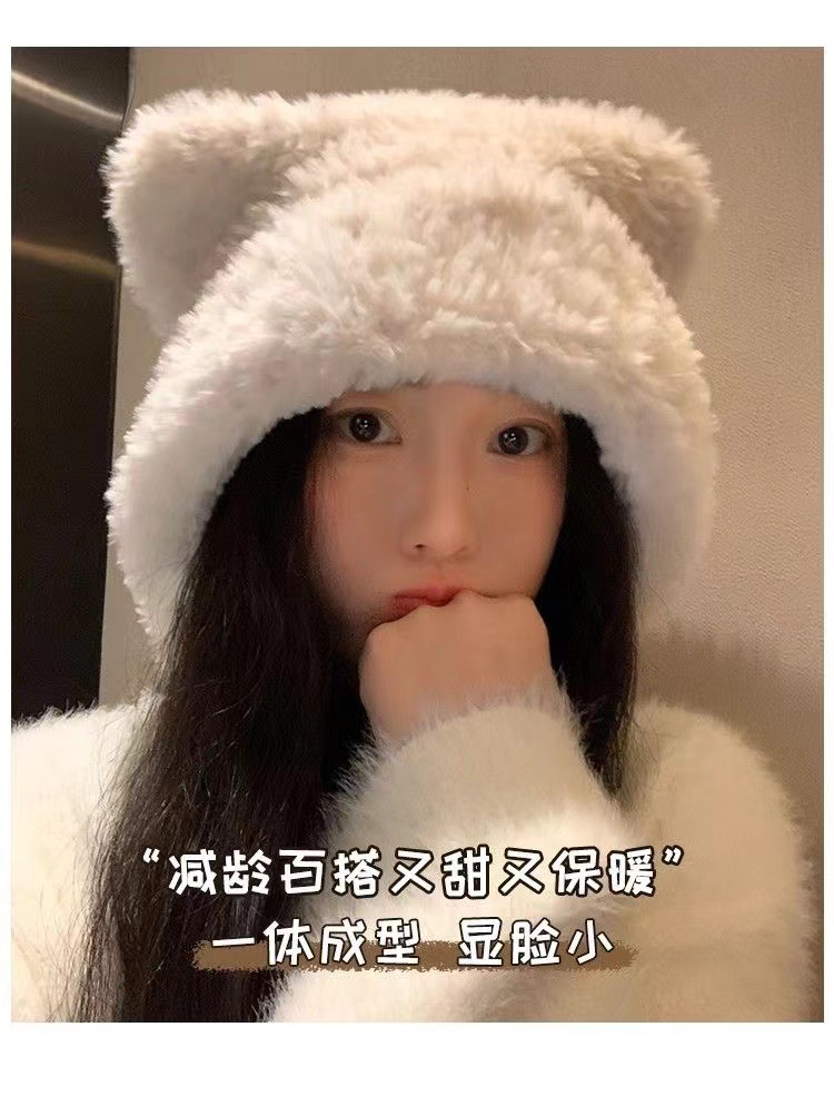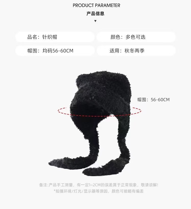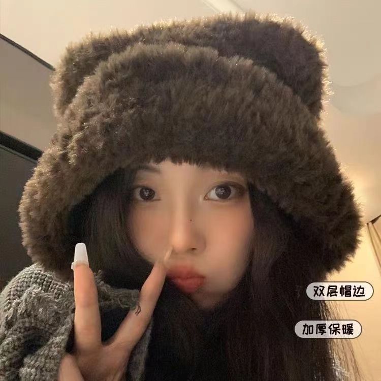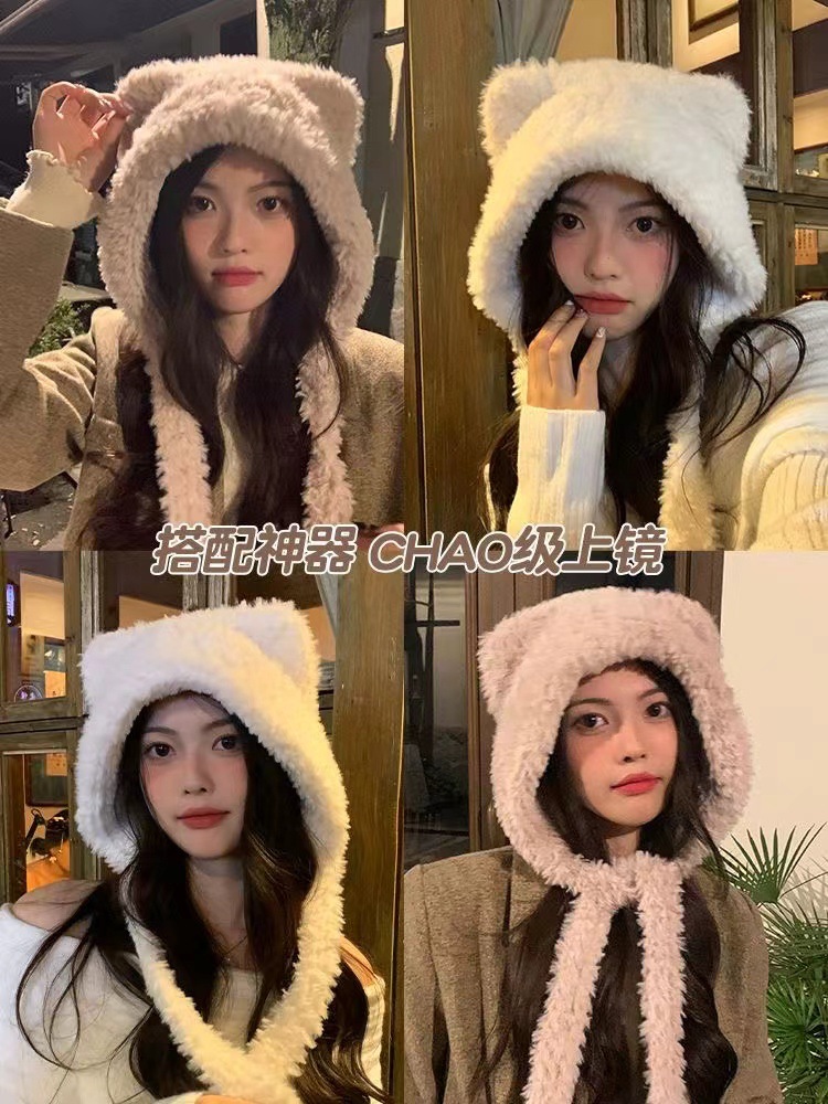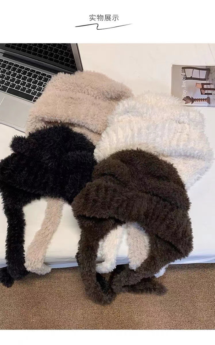 2024 하이 엔드 귀여운 봉제 여자 모자 가을과 겨울 큰 머리 양모 모자 한국 니트 모자 올매치