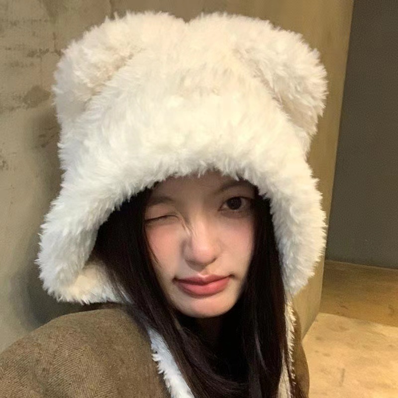 2024 하이 엔드 귀여운 봉제 여자 모자 가을과 겨울 큰 머리 양모 모자 한국 니트 모자 올매치스토어 가기