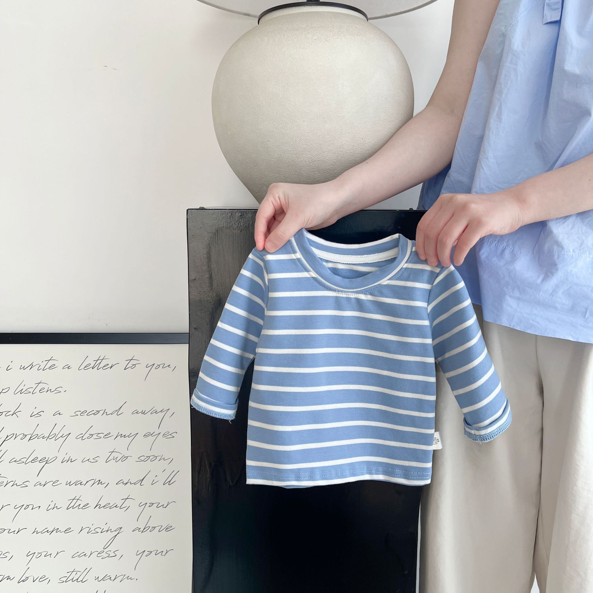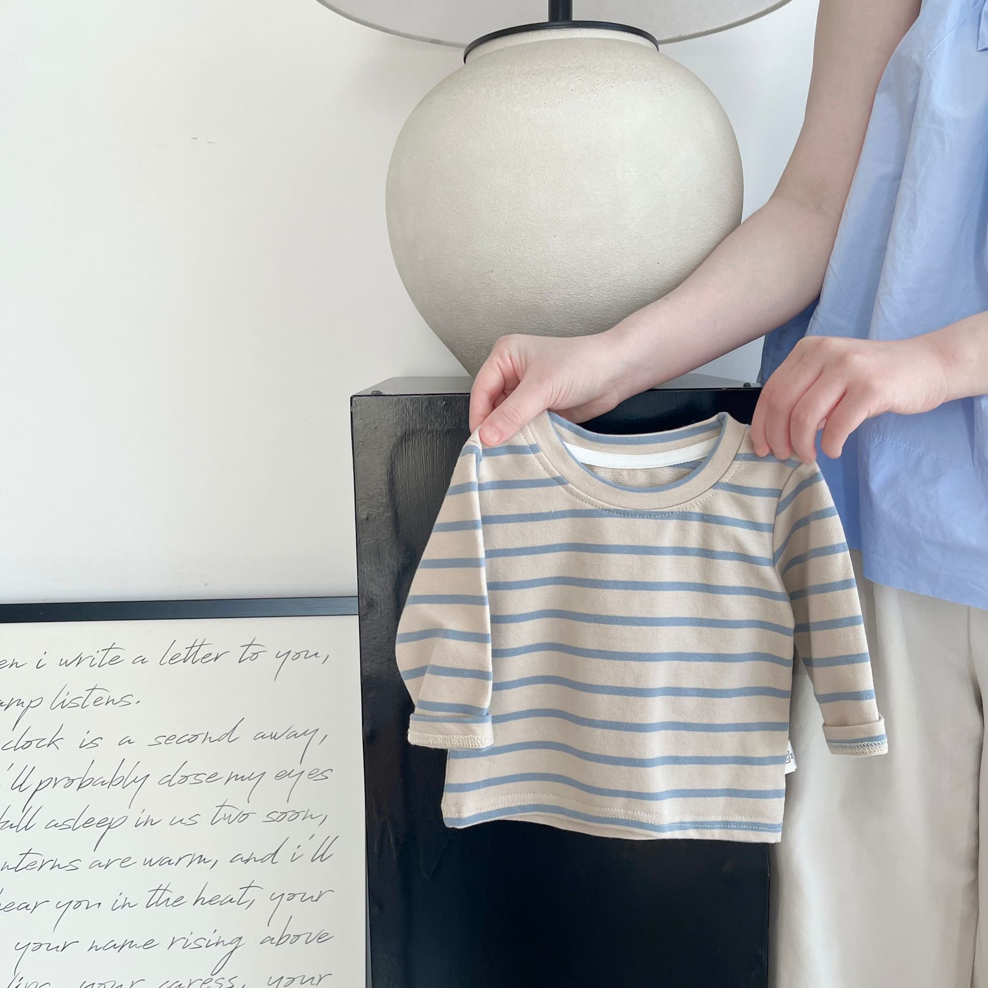 아기 가을 세트 2024 새로운 아기 줄무늬 긴 소매 바닥 셔츠 니트 스트레치 멜빵 투피스 세트스토어 가기